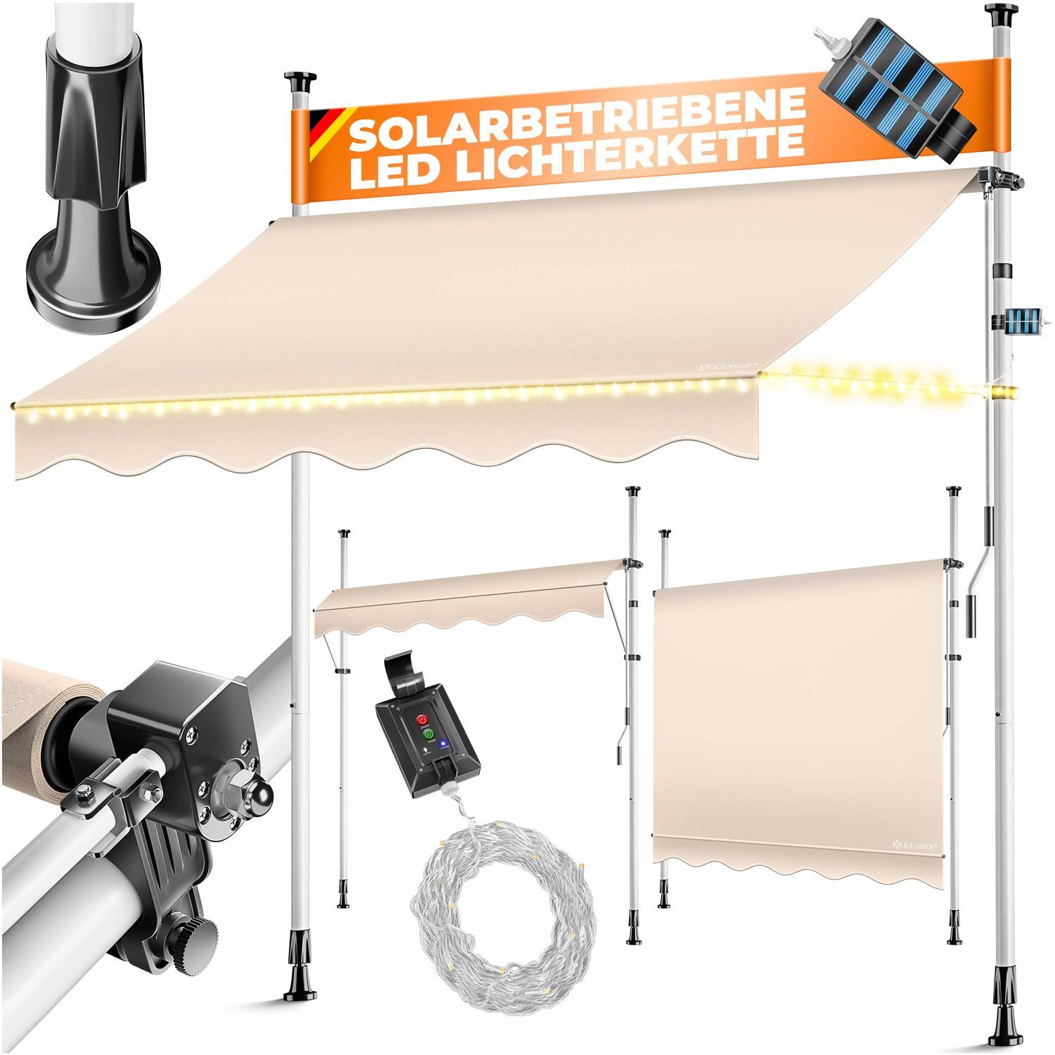 KESSER® Klemmmarkise inklusive solarbetriebene LED Lichterkette