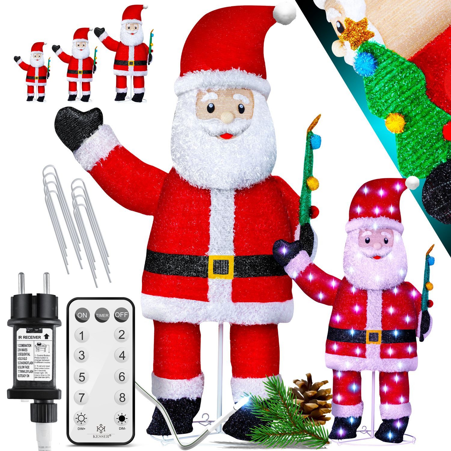 KESSER LED Schneemann oder Santa, hochwertige LEDs mit Dauerbeleuchtung und blinkende LEDs in einem warmweiß, IP44 Netzteil für den Außeneinsatz, stabile Standfüße und robuste Konstruktion, flexibel dank Kabellänge, inkl. Timer, Fernbedienung und 8x Heringe