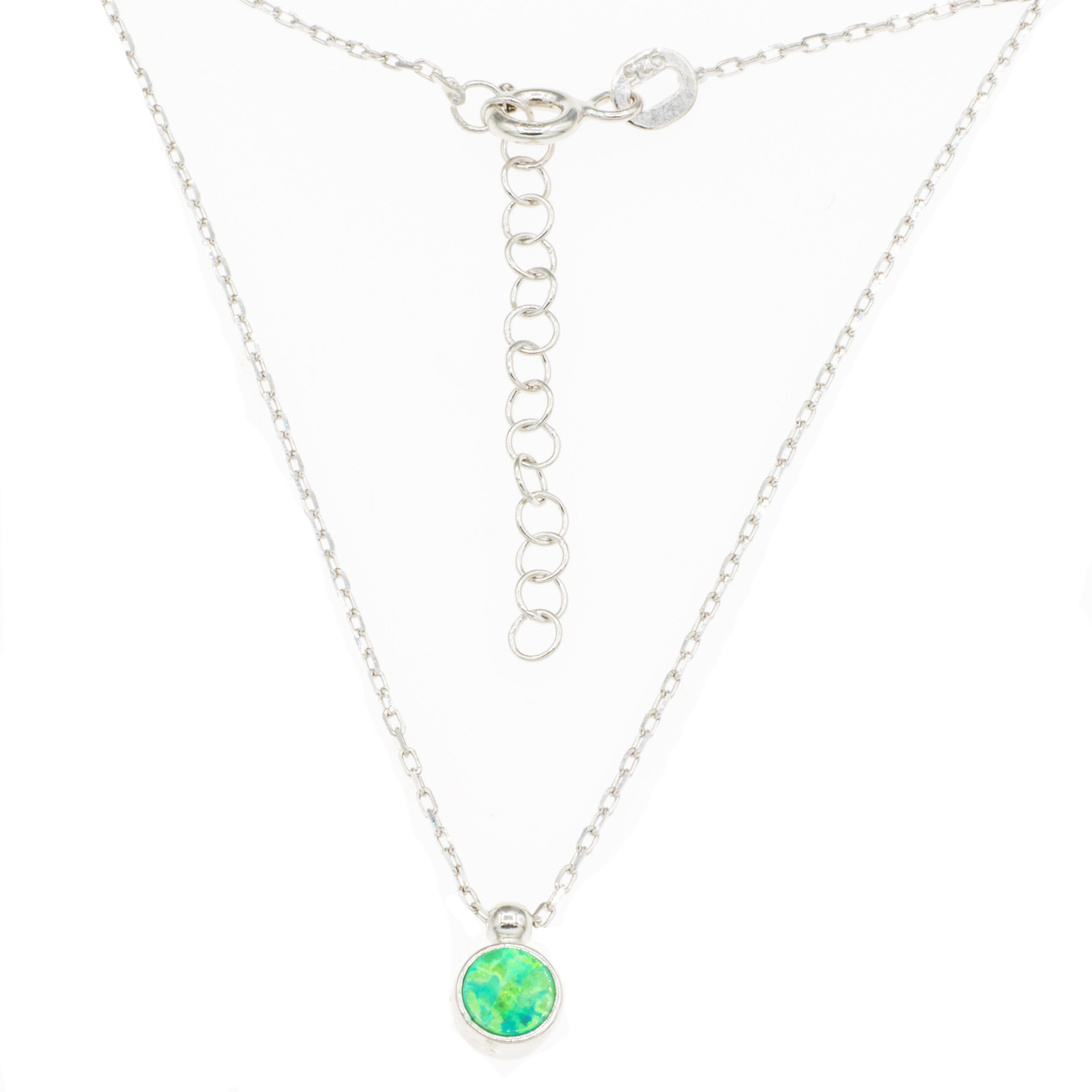 Anhänger mit synthetisch hergestelltem Opal 5,5 mm Durchmesser, zusammen mit einer Kette in 40 - 45 cm Длина. 925 Sterling Silber rhodiniert. Geliefert in einem Schmucketui