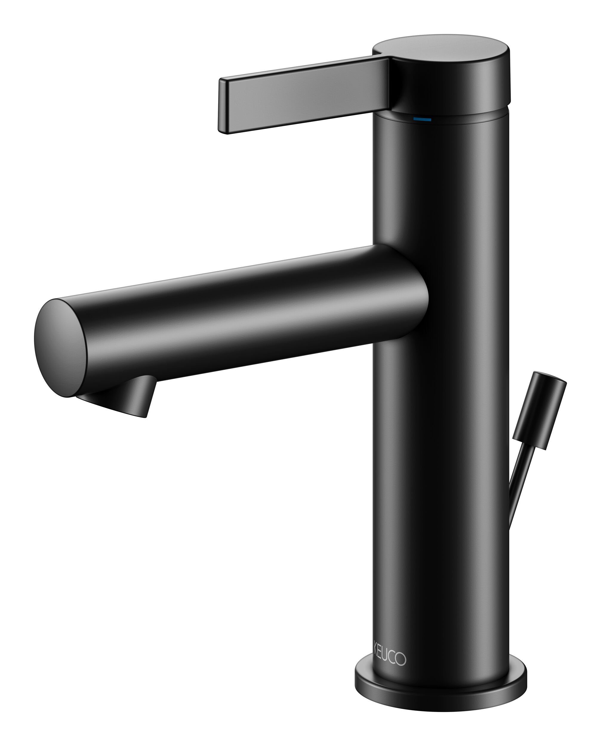 Keuco IXMO Einhebel-Waschtischarmatur mit Zugstangen-Ablaufgarnitur 147 mm mit Griff Pure - Schwarz Matt