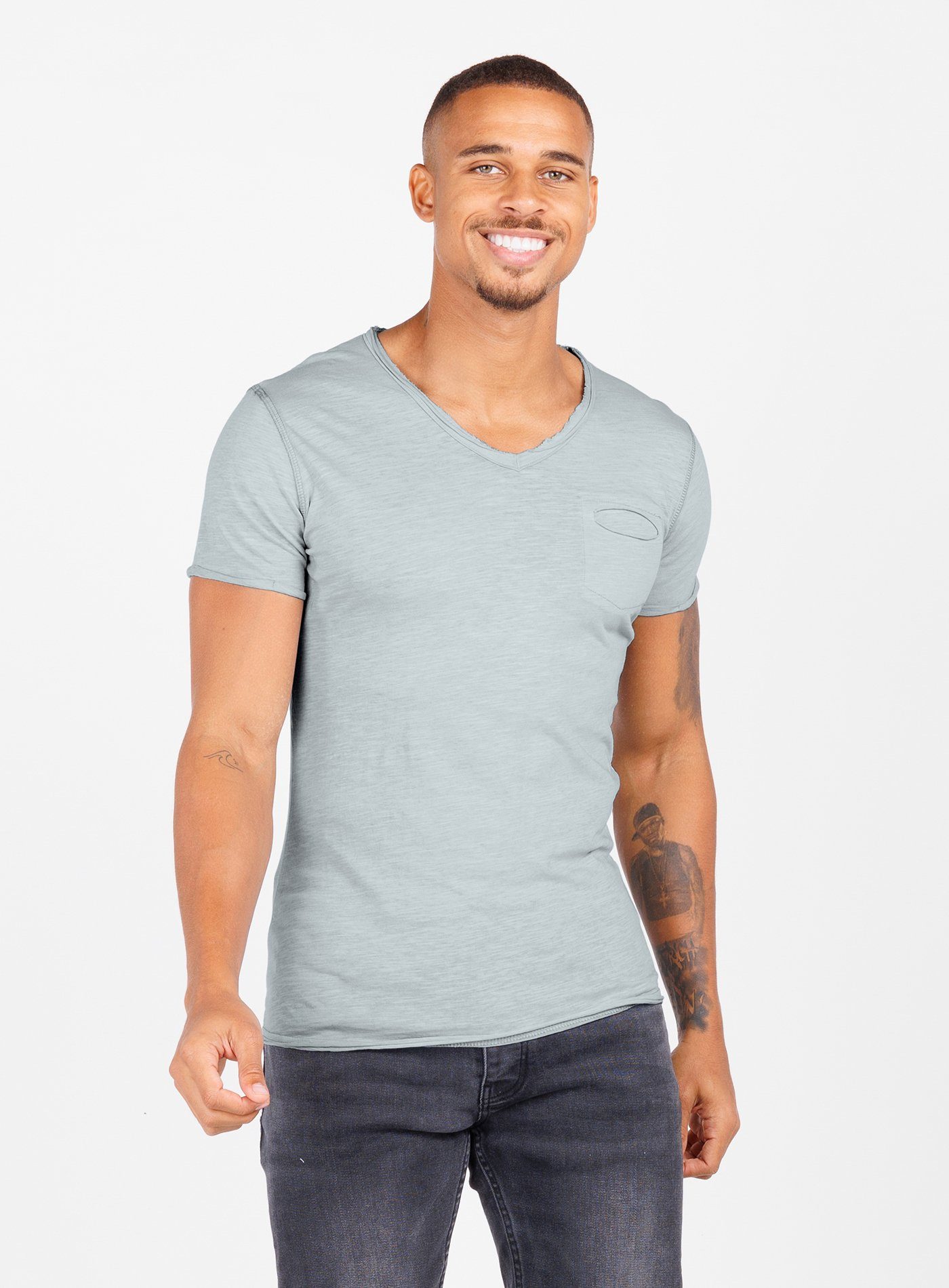 Besondere Merkmale | V-Ausschnitt unifarben kurzarm slim fit |