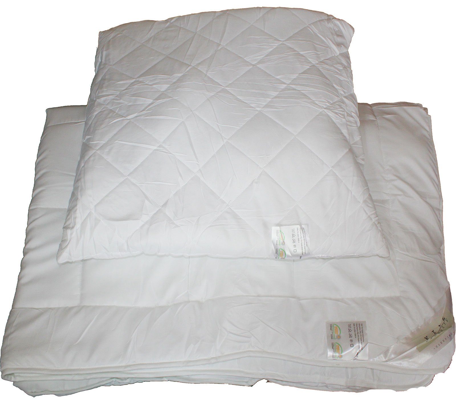 Bettdecke gefüllt mit ca. 700 Gr. silikonisierte Hohlfasern, Kopfkissen mit 700 Gramm
