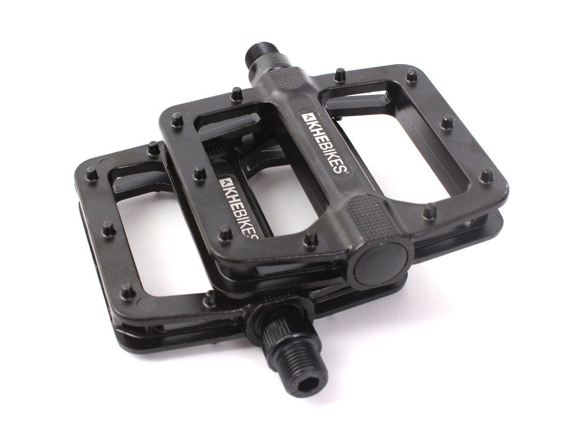 Die KHE MVP Aluminium Pedale sind durch Ihre flache 18mm Bauweise sehr leicht. Es wurden 4130 CrMo Achsen verbaut. Das Aluminiumgehäuse macht die Pedale sehr stabil was gerade bei Grinds sehr wichtig ist. Angezogen werden die Pedale mit einem 15mm Maulschlüssel oder einem 6mm Ibus.