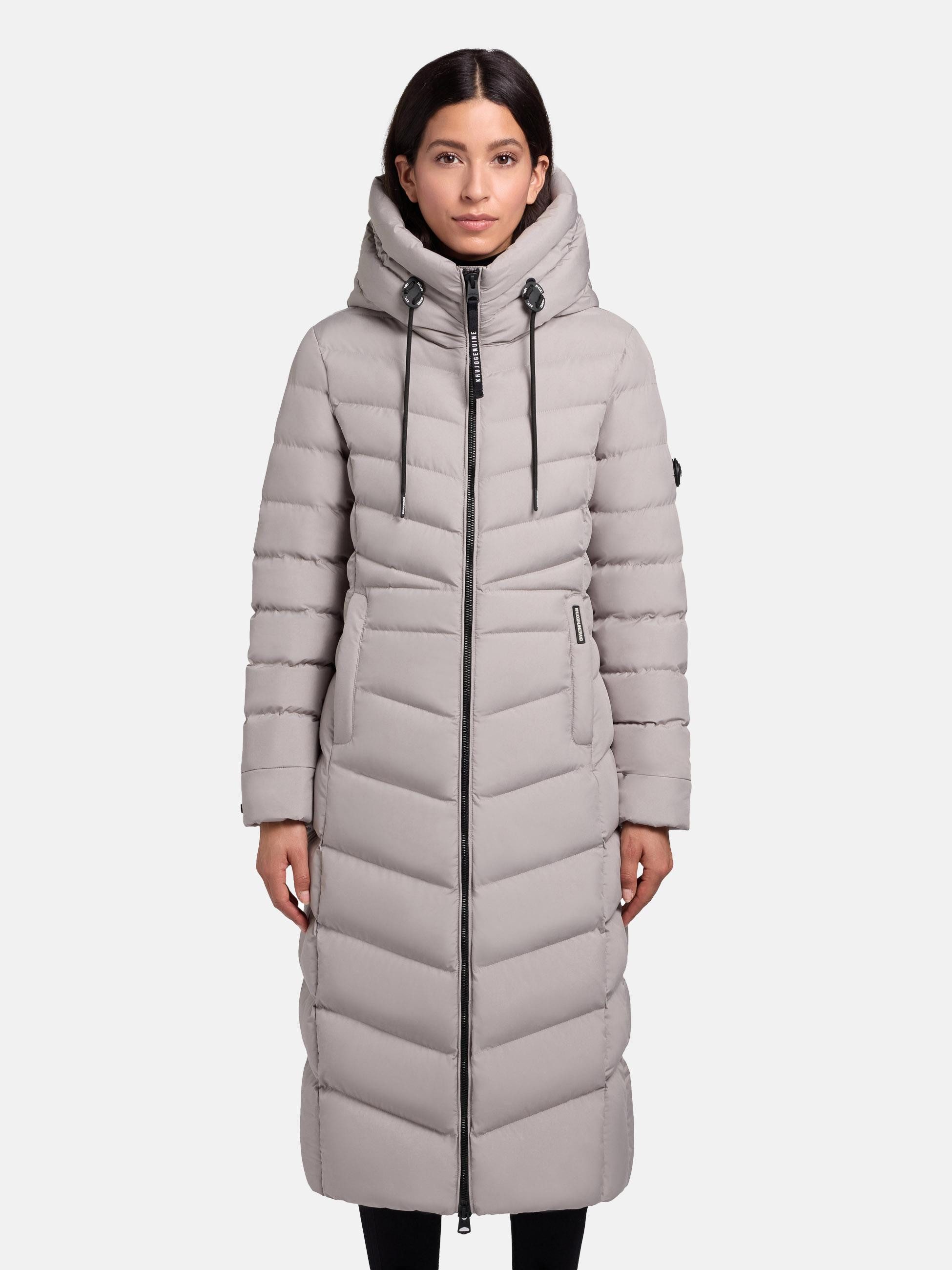 Besondere Merkmale | Langer Damen Winterpmantel mit hohem Kragen und Kapuze |