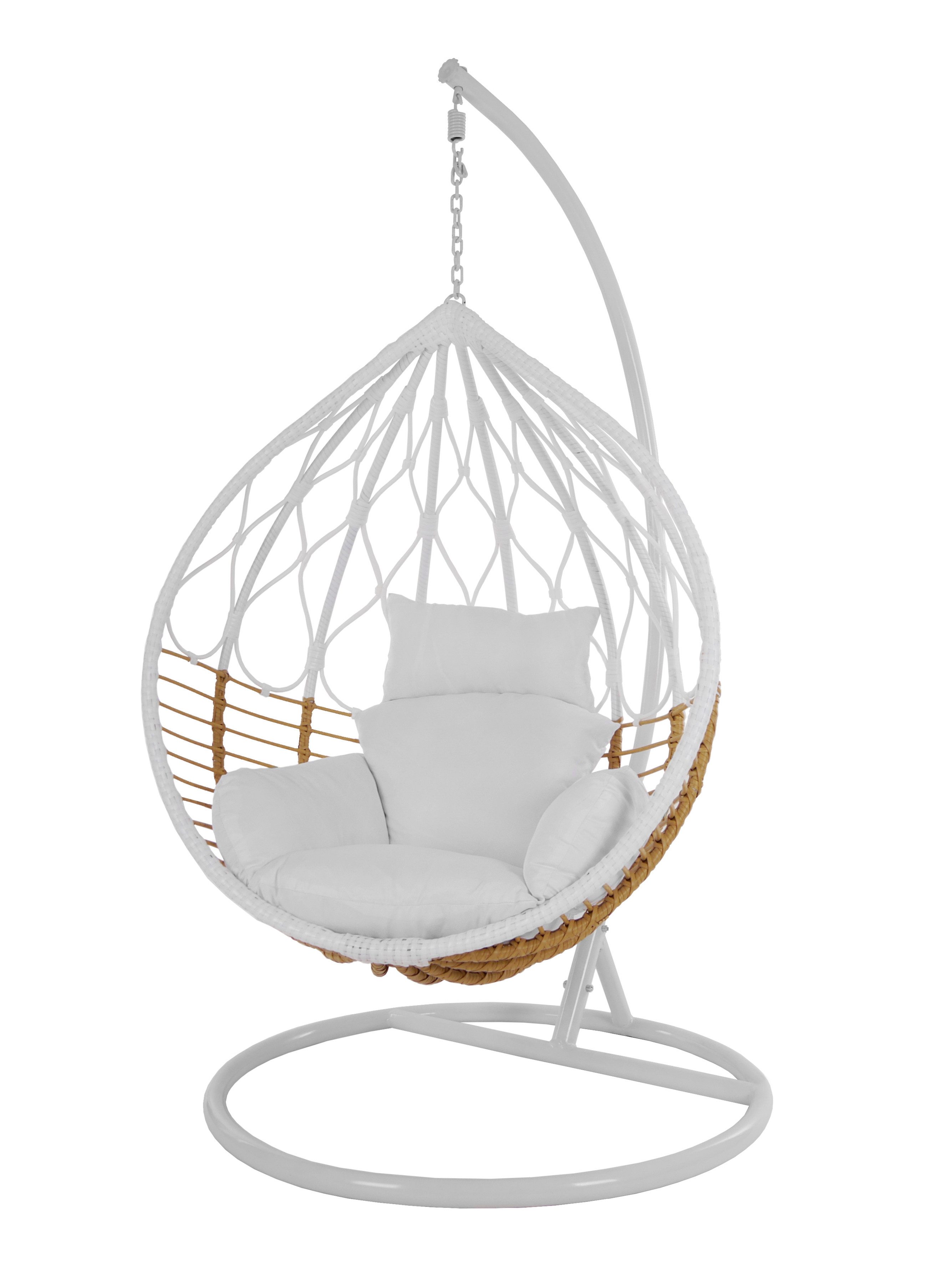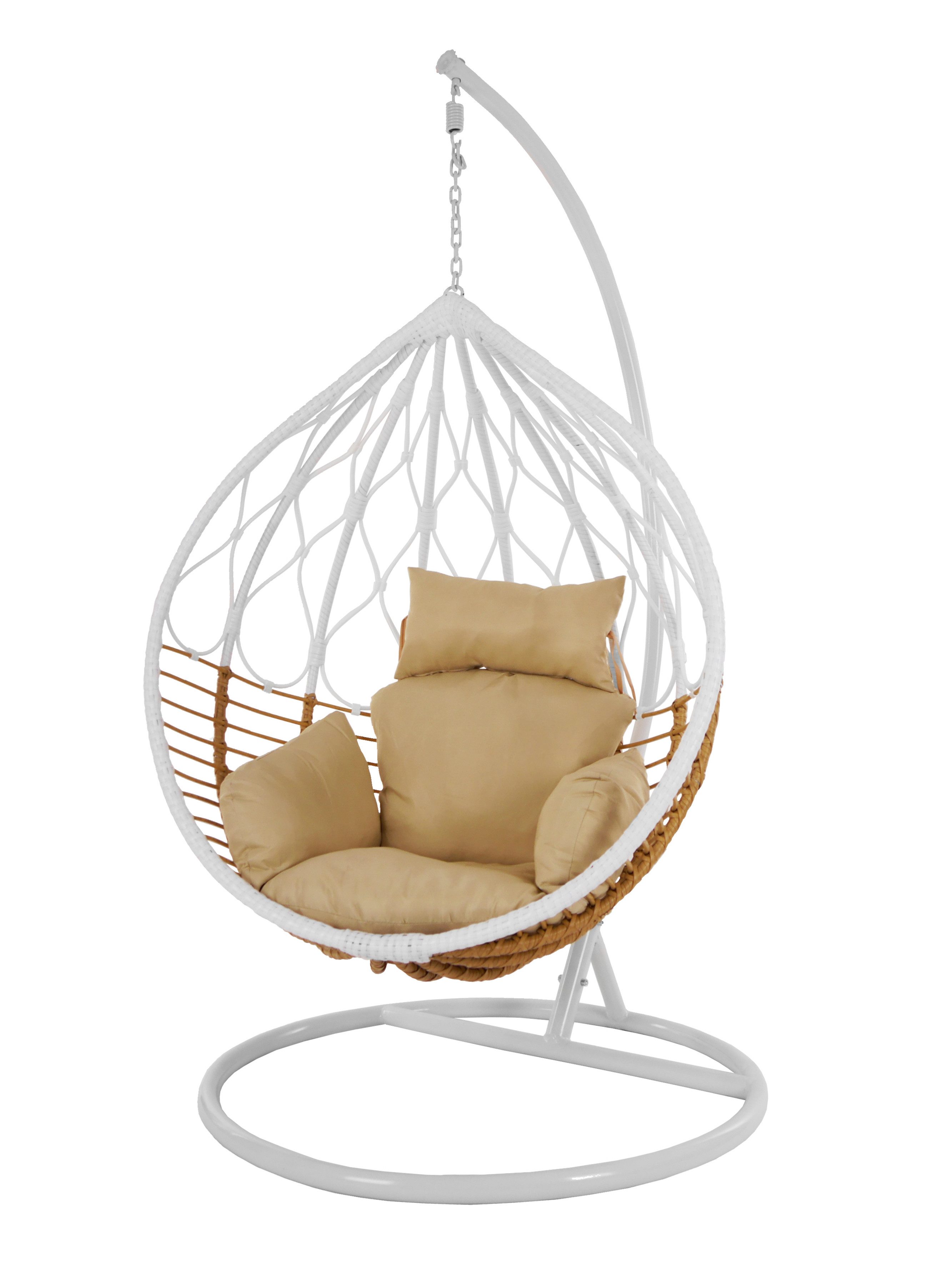 PORTOCOLOM – Tauchen Sie ein in pure Entspannung und lassen Ihre Seele baumeln! Der zweifarbige Hängesessel aus der KIDEO Kollektion ist ein wahres Design- Highlight. Das weiße Gestell kombiniert mit naturfarbenem und weißen Polyrattan macht ihn zu einem eleganten Möbelstück für Ihr Zuhause oder Ihren Garten. Ob mit einem spannenden Buch oder einem Glas Wein - der XXL- Korb bietet auch größeren Personen höchsten Komfort. Das mitgelieferte Kissenset, bestehend aus einem großen Sitzkissen und einem Kopfkissen mit seitlichen Bändern zur individuellen Befestigung, sorgt für zusätzliche Gemütlichkeit . Die separaten Innenkissen machen das Sitzen noch bequemer. Dank der Reisverschlüsse sind die Bezüge leicht abnehmbar und können in der Waschmaschine gereinigt werden.