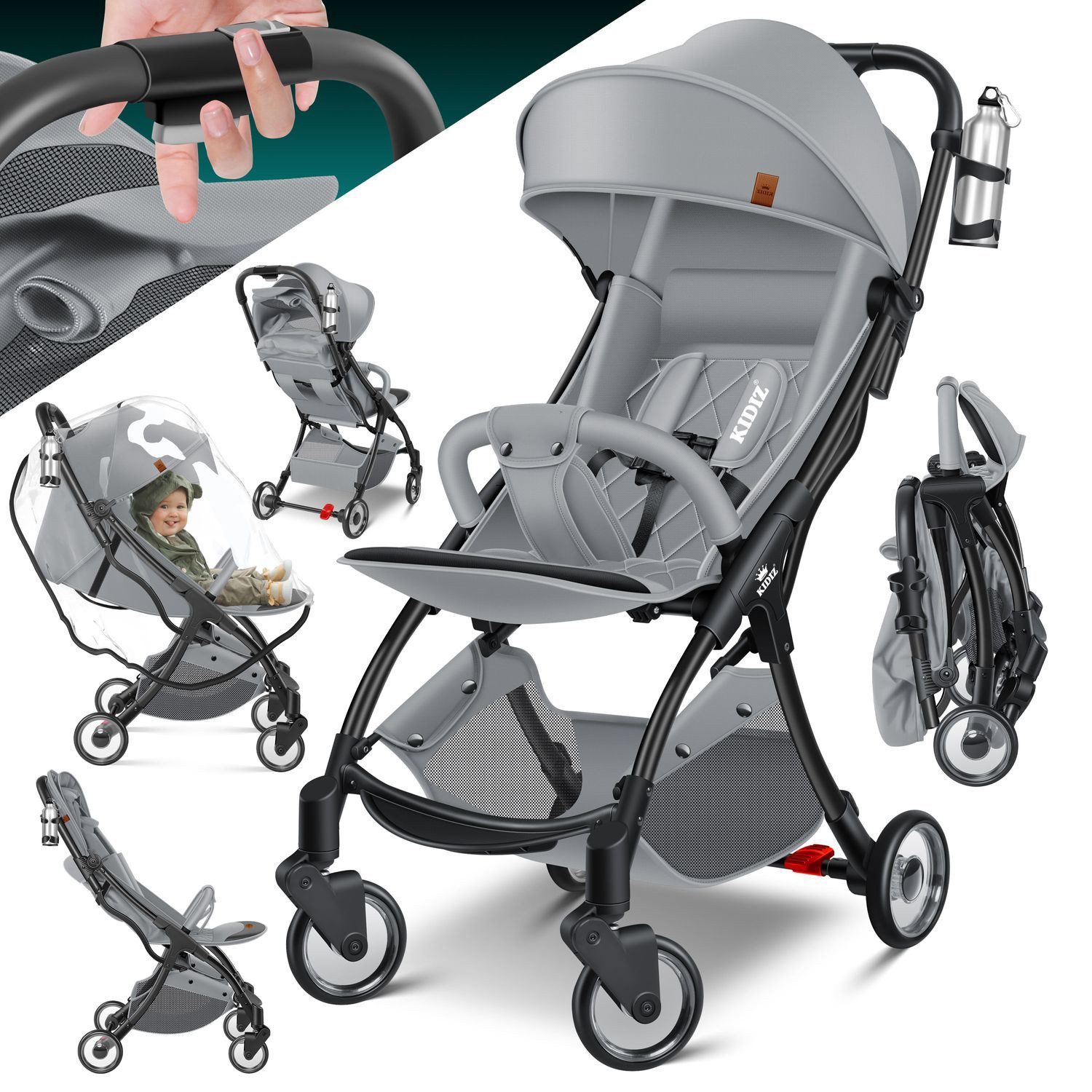 Das zeitlose Design und die hochwertige Verarbeitung machen den KIDIZ Kinderwagen zu einem unvergleichlich überzeugenden Begleiter für Sie und Ihr Kind. Mit seinem sicheren 5-Punkt-Gurt und dem aufklappbaren Schutzdach bietet er nicht nur Komfort und Bequemlichkeit, sondern auch die Gewissheit, dass Ihr Kind jederzeit sicher und geschützt ist - egal, wohin Sie unterwegs sind.