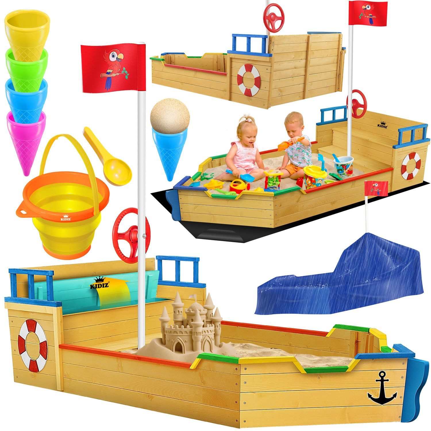Kinder lieben es kreativ zu sein und ihrer Fantasie freien Lauf zu lassen. Der Sandkasten im Piratendesign lässt Kinderträume wahr werden. Nur ein Sprung in den eigenen Garten lässt Ihr Kind zum Kapitän eines eigenen Schiffes werden. Der Piratenmast ist ausgestattet mit einer Flagge auf dem ein Papagei aufgedruckt ist.