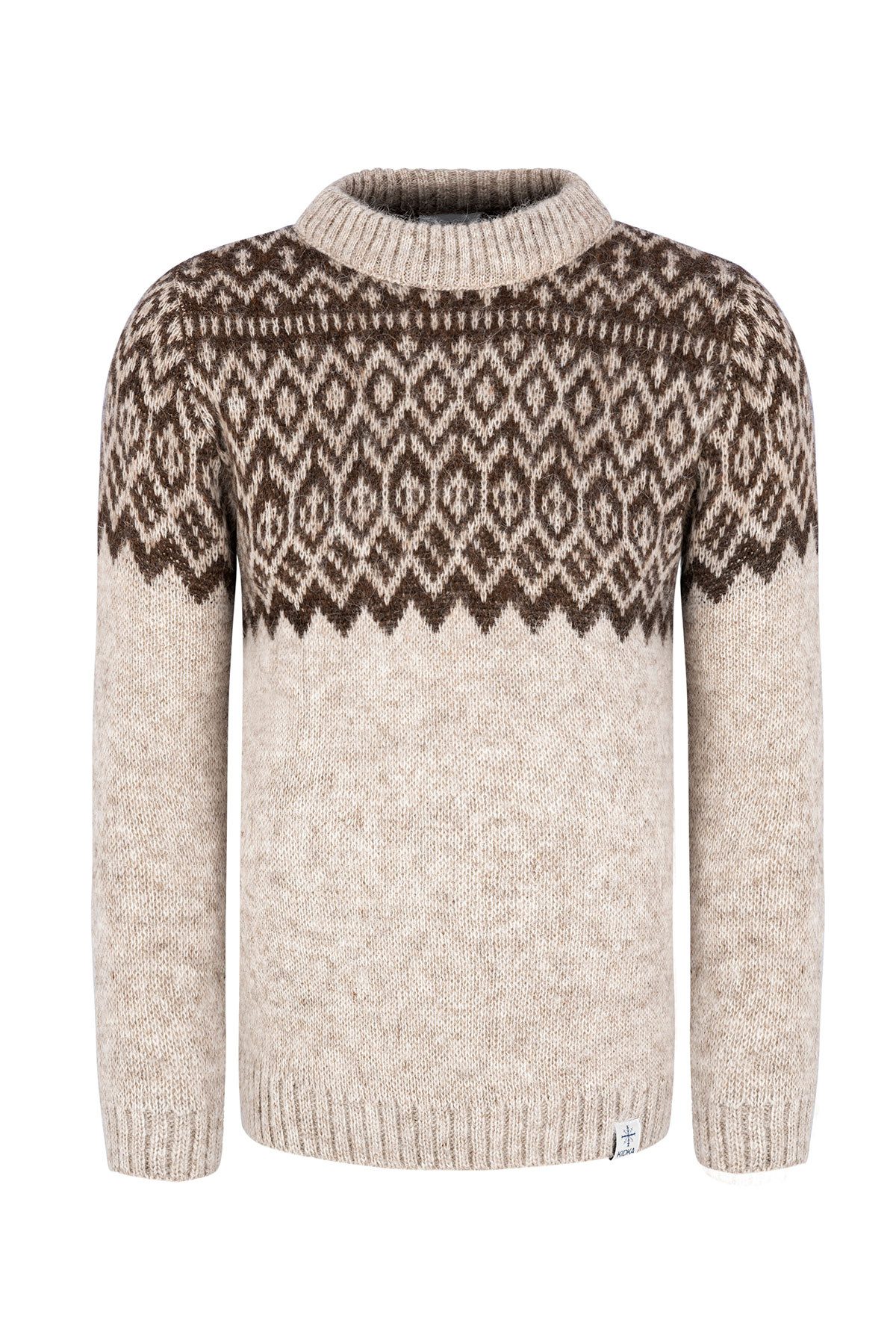 Der isländische Wollpullover „Borg“ vereint traditionelle Handwerkskunst mit praktischen Vorteilen für den Alltag und Outdoor-Aktivitäten. Gefertigt aus 100% isländischer Wolle, überzeugt er durch seine Robustheit und außergewöhnliche Wärmeeigenschaften – perfekt für Outdoor-Enthusiasten, die Wert auf natürliche Materialien legen. Isländische Wolle ist für ihre besondere Struktur bekannt: Sie ist nicht so weich wie andere Wollarten, bietet dafür aber unvergleichliche Wärmeisolierung und Atmungsaktivität. Genau diese Eigenschaften machen sie bei Outdoor-Fans so beliebt. Egal ob beim Wandern, Spazierengehen oder bei Aktivitäten in der Natur – der „Borg“ hält Sie zuverlässig warm, selbst bei widrigem Wetter. Das traditionelle zweifarbige Muster (beige und braun) verleiht dem Pullover eine zeitlose Optik, während die Unisex-Passform ihn für Damen und Herren gleichermaßen geeignet macht. Mit einem Gewicht von ca. 475 g (Размер M) ist der Pullover leicht, aber dennoch strapazierfähig genug, um Sie auch bei intensiver Nutzung zu begleiten. Hergestellt in Island, steht der „Borg“ für authentische Qualität und höchste Handwerkskunst. Er ist nicht nur ein funktionales Kleidungsstück, sondern auch ein stilvolles Statement, das traditionelle Mode mit moderner Vielseitigkeit verbindet.