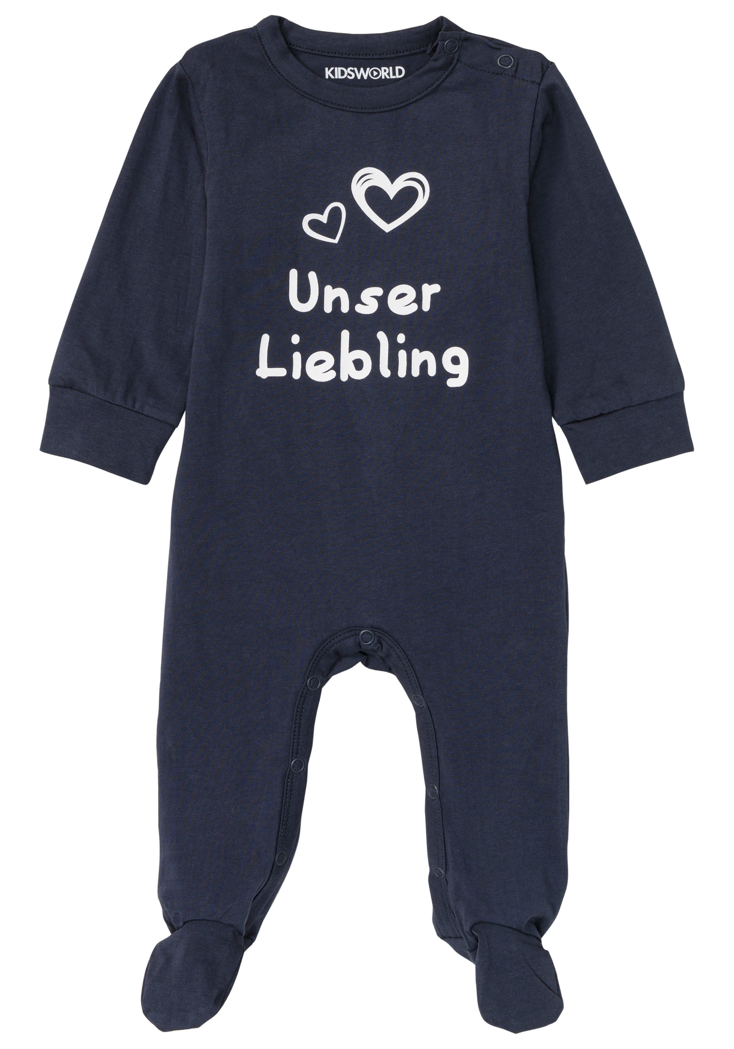 Mit dem Schlafoverall »Baby-Schlafanzug, Unser Liebling - NEUE KOLLEKTION« von KIDSWORLD zu angenehmem Schlaf!
