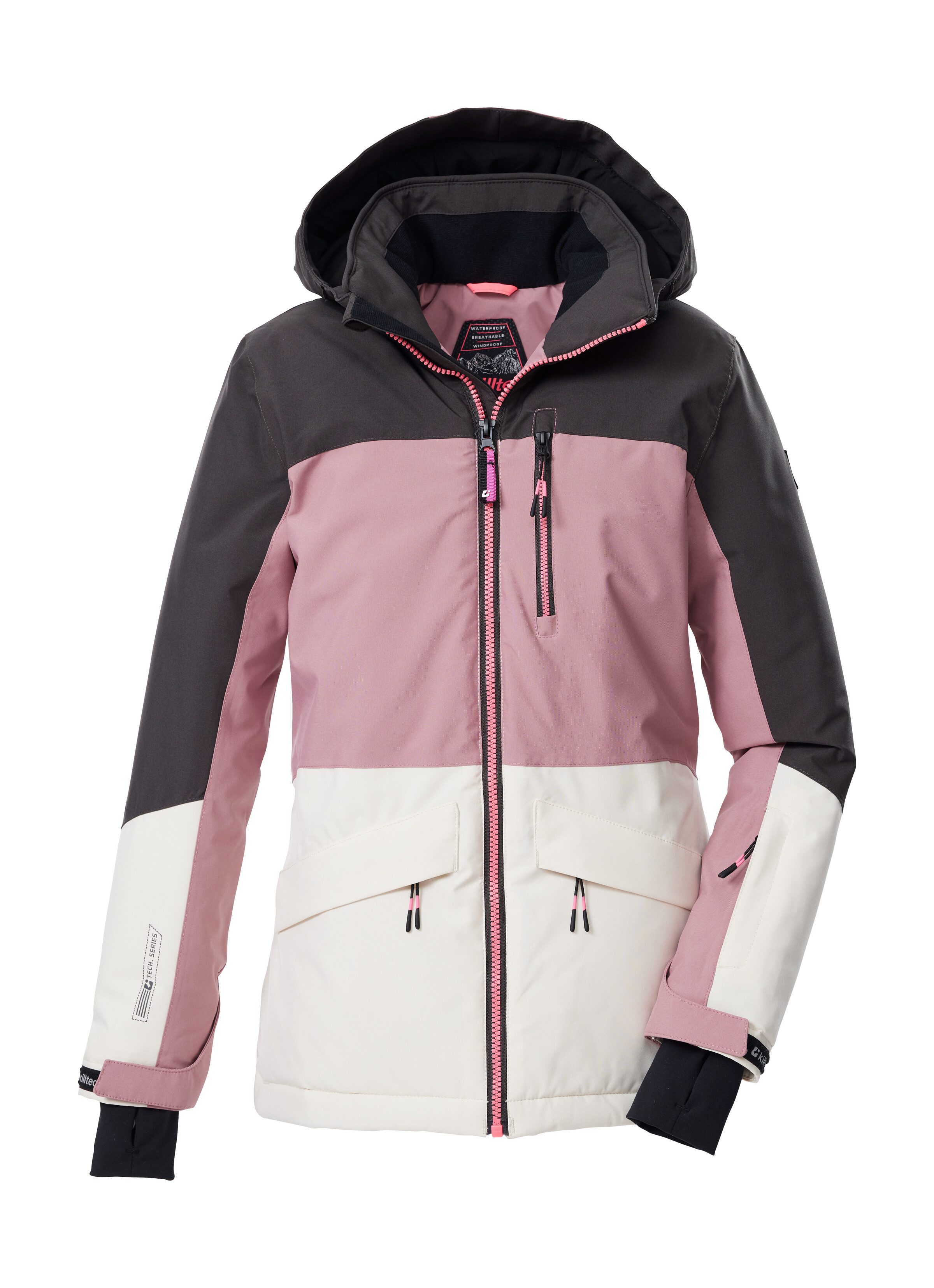 Besondere Merkmale | Wasserdichte, atmungsaktive Kinderjacke mit Schneefang und Taschen |