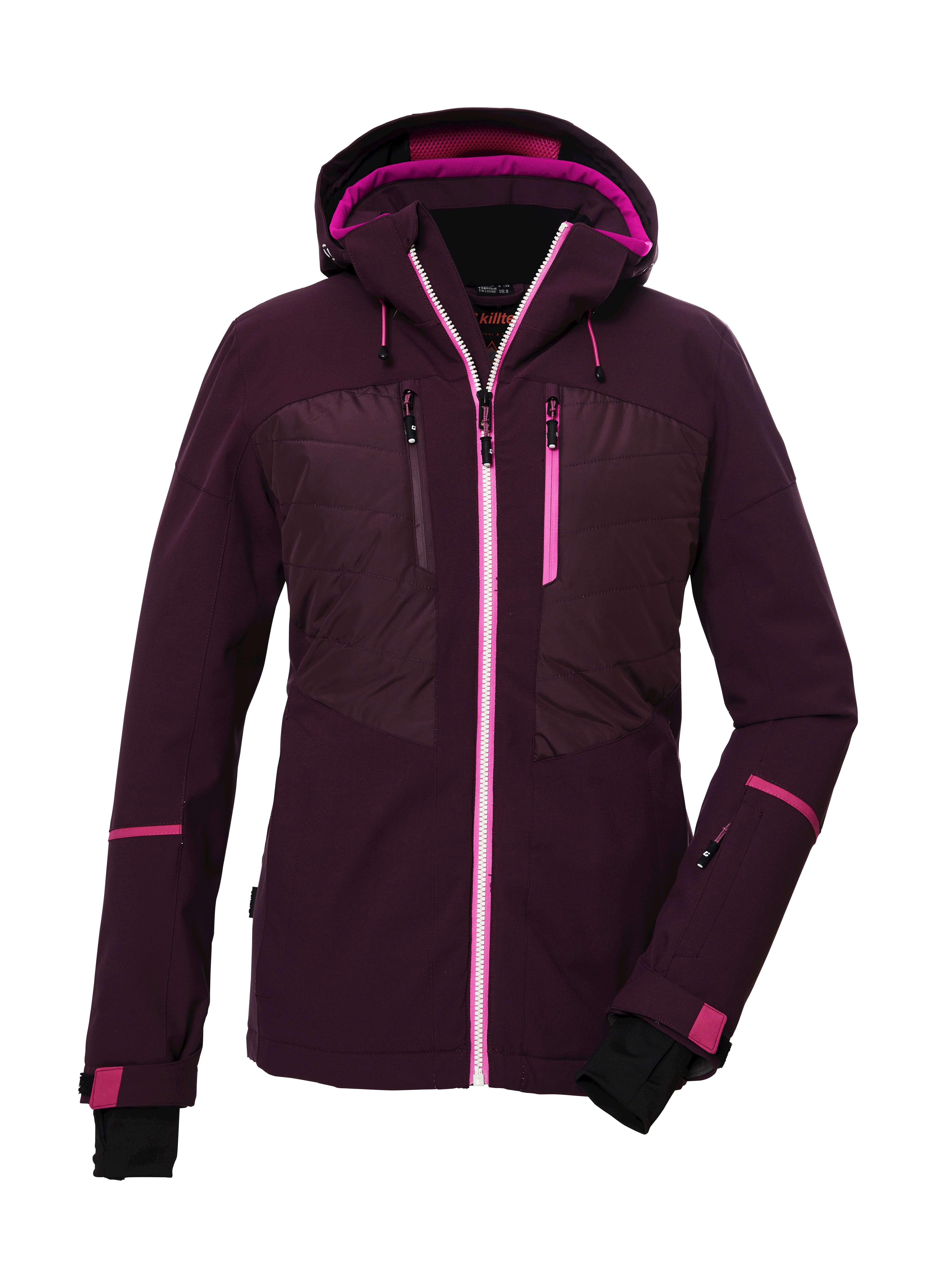 Bei der Skijacke von killtec erzeugen Fashion und Funktion eine sehenswerte Kombination. Hybridoptik kombiniert mit raffinierten Details machen sie zu einem echten Hingucker. Die Jacke ist atmungsaktiv mit einer Wasserdampfdurchlässigkeit von 3.000 g/m²/24 h. Sie hat verschweißte Nähte, wasserfeste Reißverschlüsse und ist mit einer 10.000 mm Wassersäule zu 100% wasser- und winddicht. Der hochschließende Kragen schützt vor Wind und Källte. Der Schneefang verhindert das Eindringen von Nässe in die Jacke. Der Front-Reißverschluss ist mit einem praktischen Kinnschutz ausgestattet. Zahlreiche Taschen bieten Platz für Skipass, Handy und Co. An den verstellbaren Armabschlüssen befinden sich Lycramanschetten mit Daumenlöchern, die das Eindringen von Wind verhindern. Diese Funktionsjacke wurde mit fluorfreien Mitteln imprägniert.