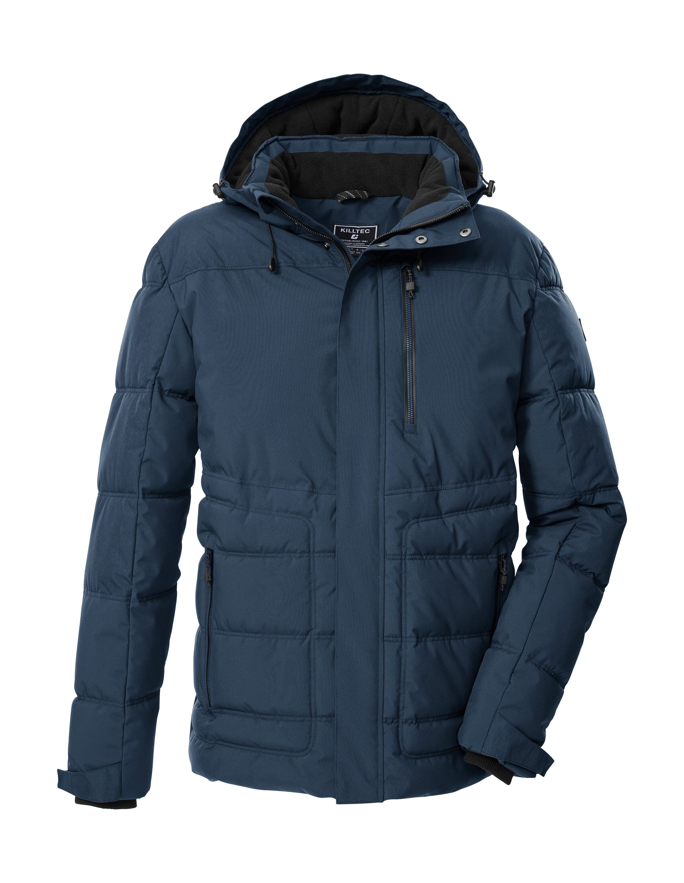Die Herren Steppjacke von killtec überzeugt auch durch modernes Design und funktionale Eigenschaften. Mit einer 10.000 mm Wassersäule und der atmungsaktiven Beschichtung mit einer Wasserdampfdurchlässigkeit von 3.000 g/m²/24 h ist die Jacke wasser- und windabweisend. Die Kapuze ist regulierbar und kann bei Bedarf abgenommen werden. Die Ärmelabschlüsse sind verstellbar und mit bequemen Strickbündchen ausgestattet. Die Weite des Saumes lässt sich anhand eines Korelzuges verstellen. Drei Zippertaschen und eine Innentasche bieten Platz für Handy, Schlüssel und Co. Diese Jacke wurde PFAs-frei imprägniert und teilweise aus recyceltem Material hergestellt.