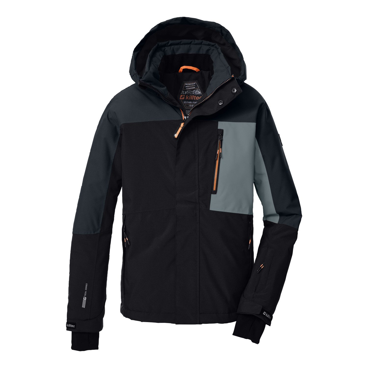 Die killtec Kids Skijacke kombiniert angesagtes Design mit cleveren Features. Colourblock in angesagter Farbkombination und reflektierende Elemente machen die Skijacke zu einem echten Hingucker. Die Jacke hat verschweißte Nähte und ist wasser- und winddicht (10.000 mm, unser Tipp: ab und zu sollte die Jacke neu imprägniert werden). Gleichzeitig ist sie atmungsaktiv (3.000 g/m²/24 h). Die Kapuze und der Saum sind regulierbar. Der verdeckte Reißverschluss ist mit einem praktischen Kinnschutz ausgestattet. Der rutschfeste Schneefang, verstellbare Ärmelabschlüsse mit Lycracuffs sowie die Handy- und Skipasstasche tragen zum Spaß beim Wintersport bei. killtec liegt es besonders am Herzen, die Kollektionen nachhaltiger und zukunftsfähiger zu machen. So setzt killtec verstärkt auf verantwortungsbewusstere Herstellungsverfahren. Diese Jacke wurde daher PFAs-frei imprägniert.