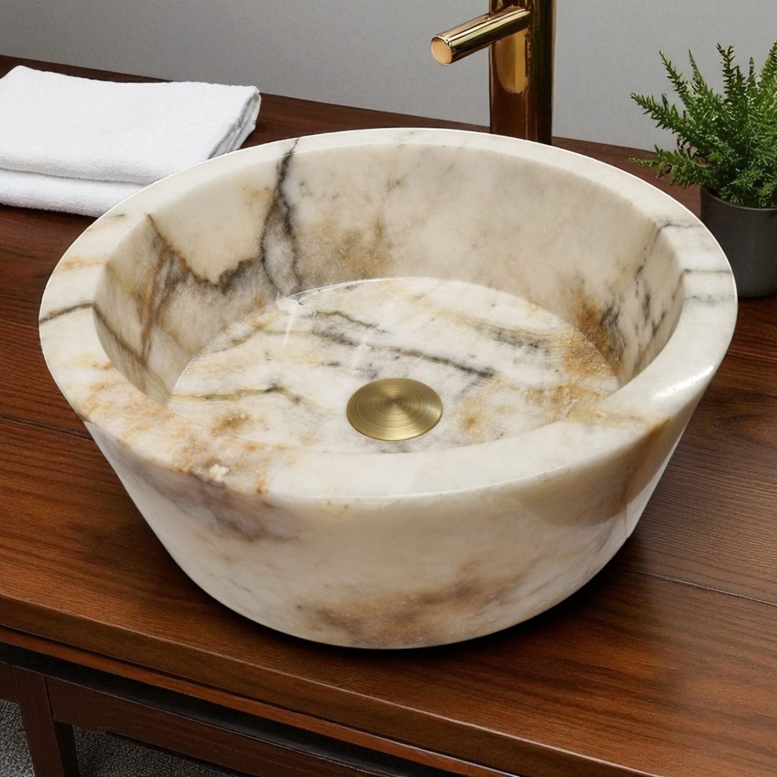 Exklusives Naturstein Waschbecken aus Onyx-Marmor – Rund, handgefertigt in Indonesien