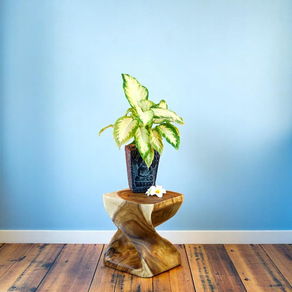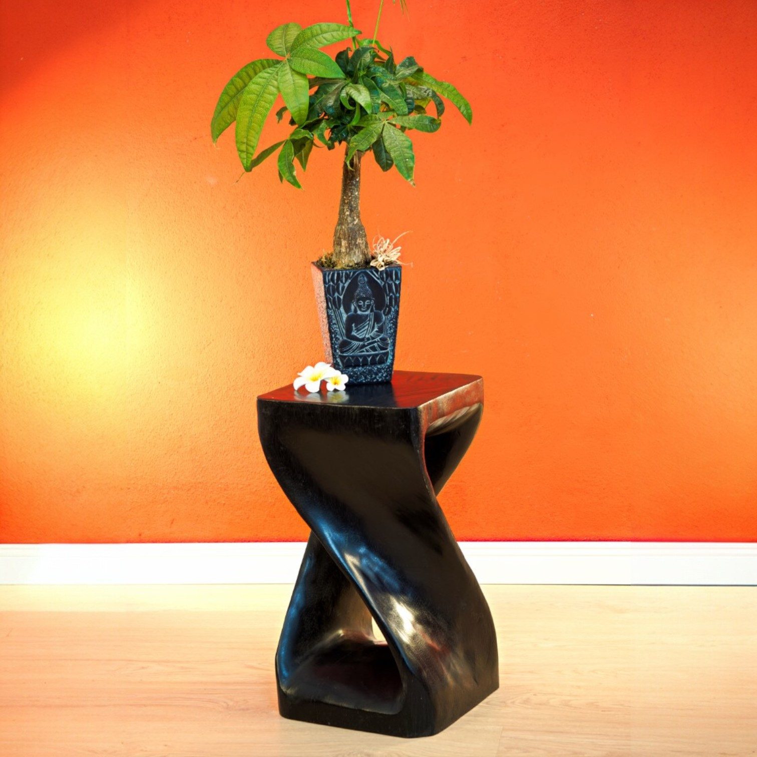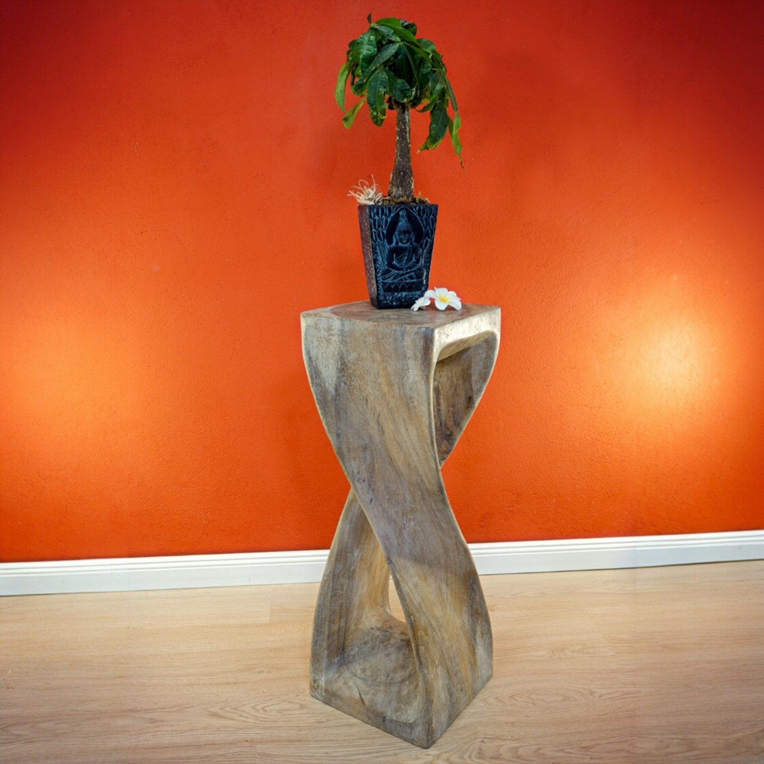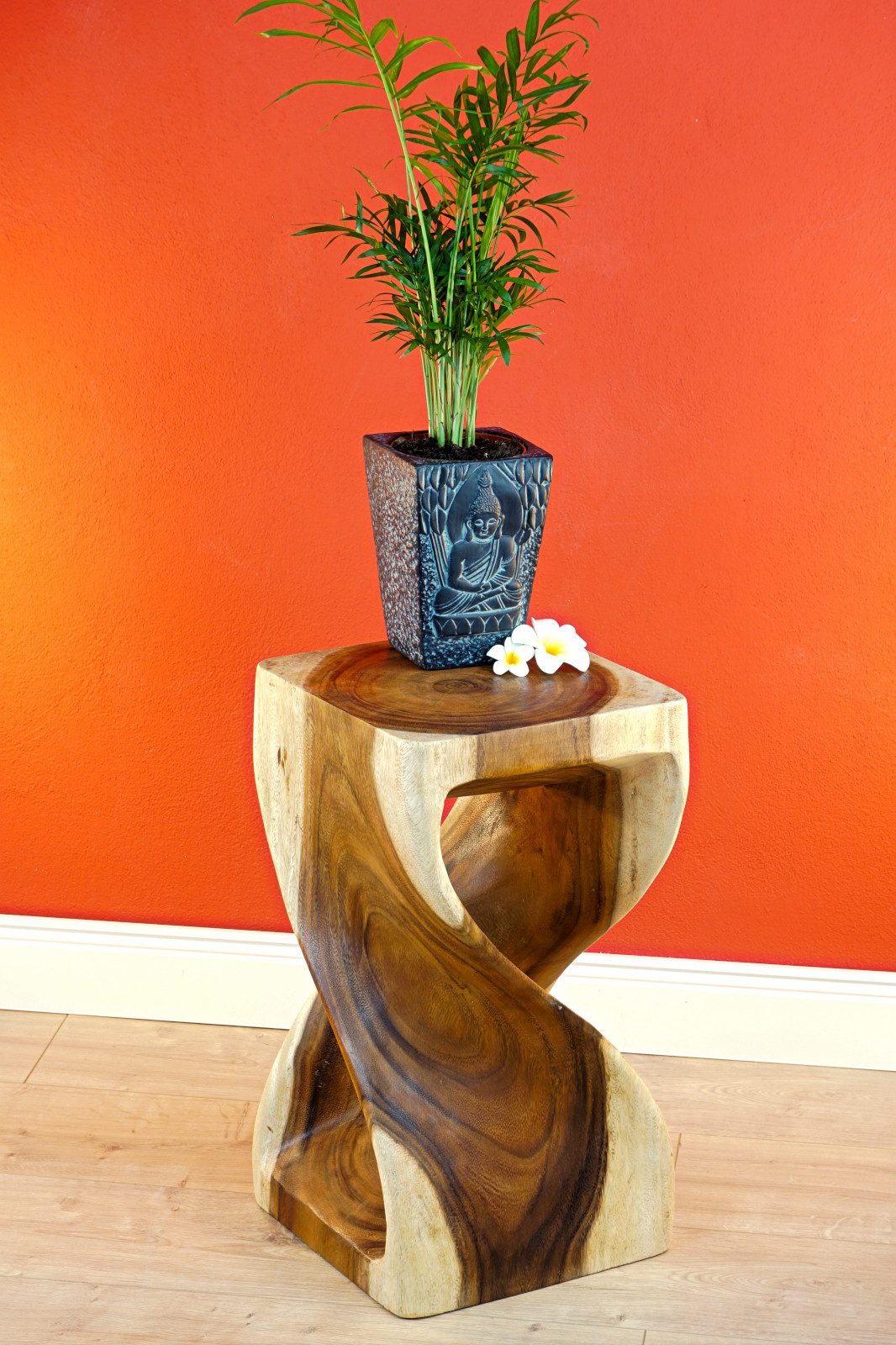 Mit dem Suar Massivholz Beistelltisch TWIST holen Sie sich ein Stück asiatischer Handwerkskunst in Ihr Zuhause. Die kunstvolle, verdrehte Form symbolisiert die Harmonie von Design und Funktionalität und verleiht jedem Raum eine warme, natürliche Atmosphäre.