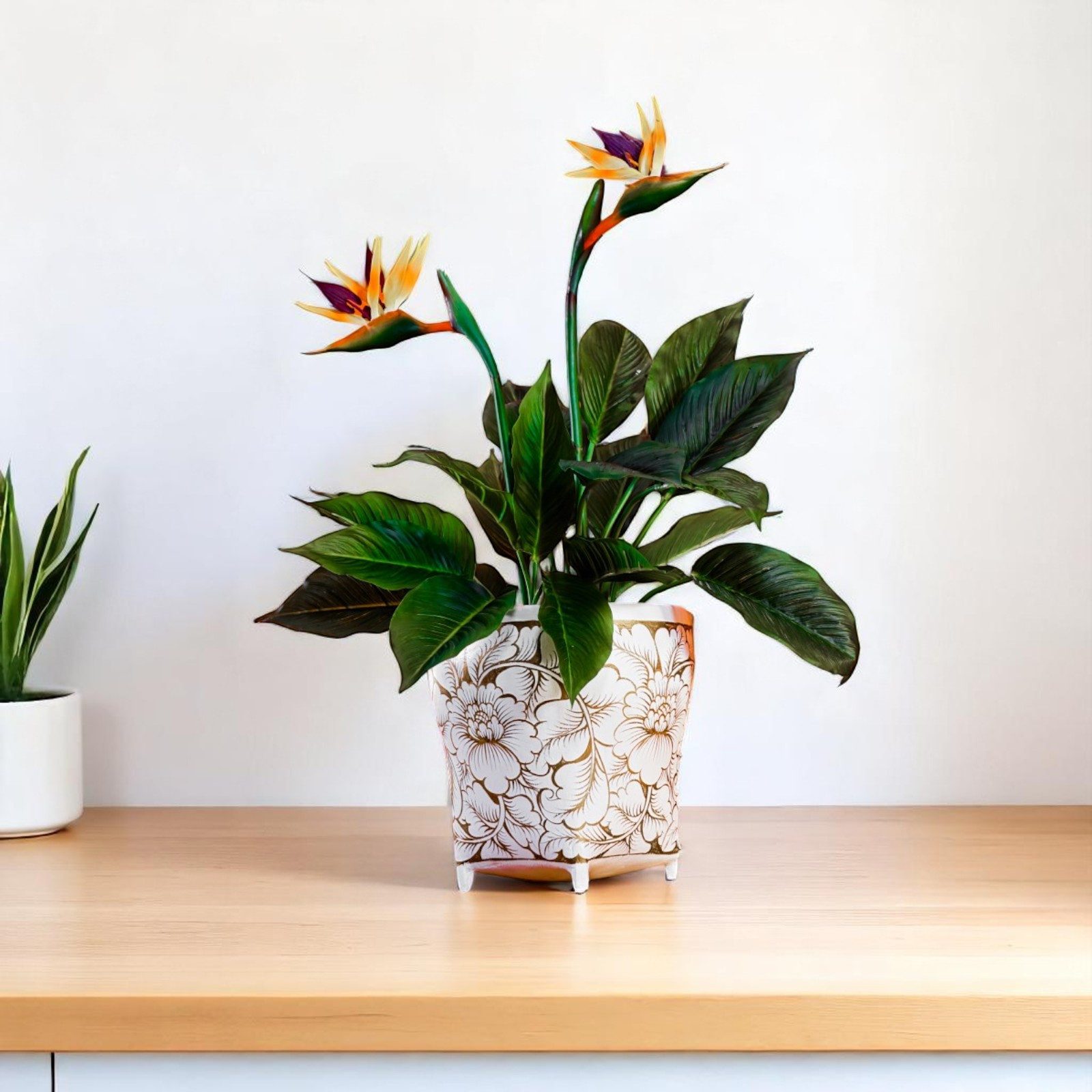 Jedes Stück wurde sorgfältig von erfahrenen Kunsthandwerkern gefertigt und mit liebevollen Details handbemalt. Diese einzigartigen Übertöpfe verbinden thailändische Traditionen mit modernem Design und sind ein wahres Highlight für jeden Raum.
