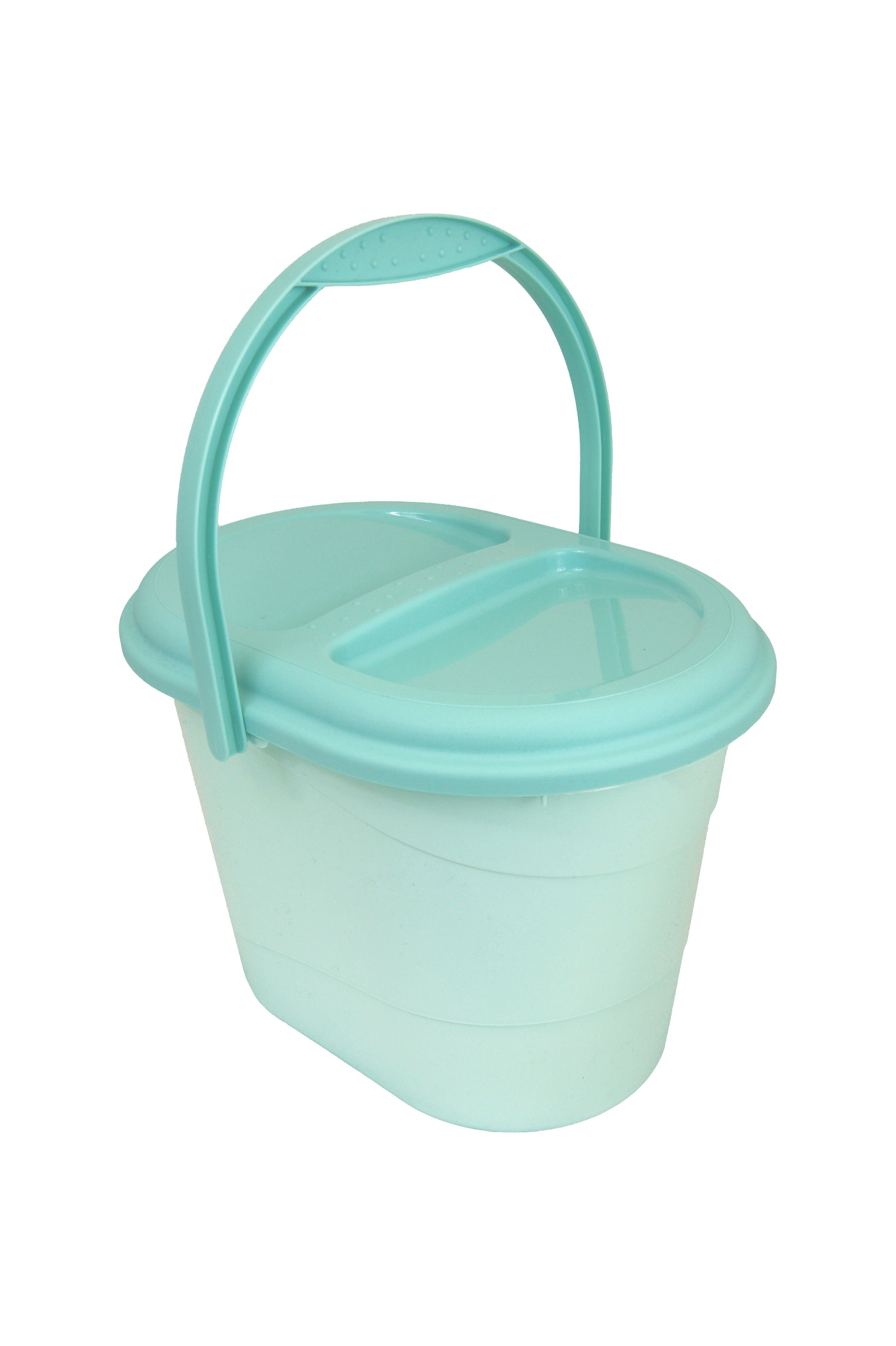 Leichtes Öffnen und Спрятать durch Deckel mit integriertem Griff, einfaches Transportieren durch handlichen und stabilen Eimerbügel, kompakte Размер mit ausreichend Volumen.