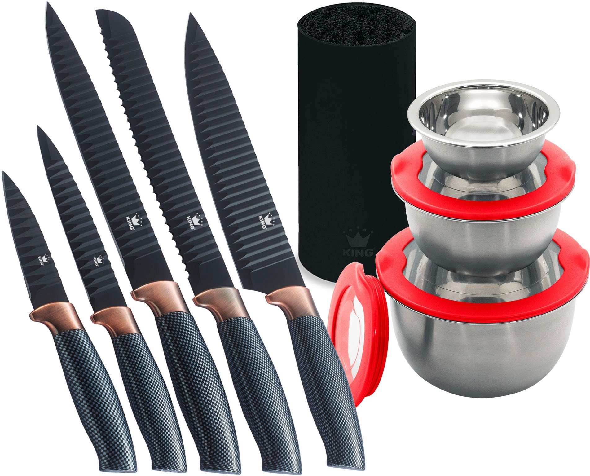1 Messerblock 3 Deckel 3 Schüsseln 5 Messer