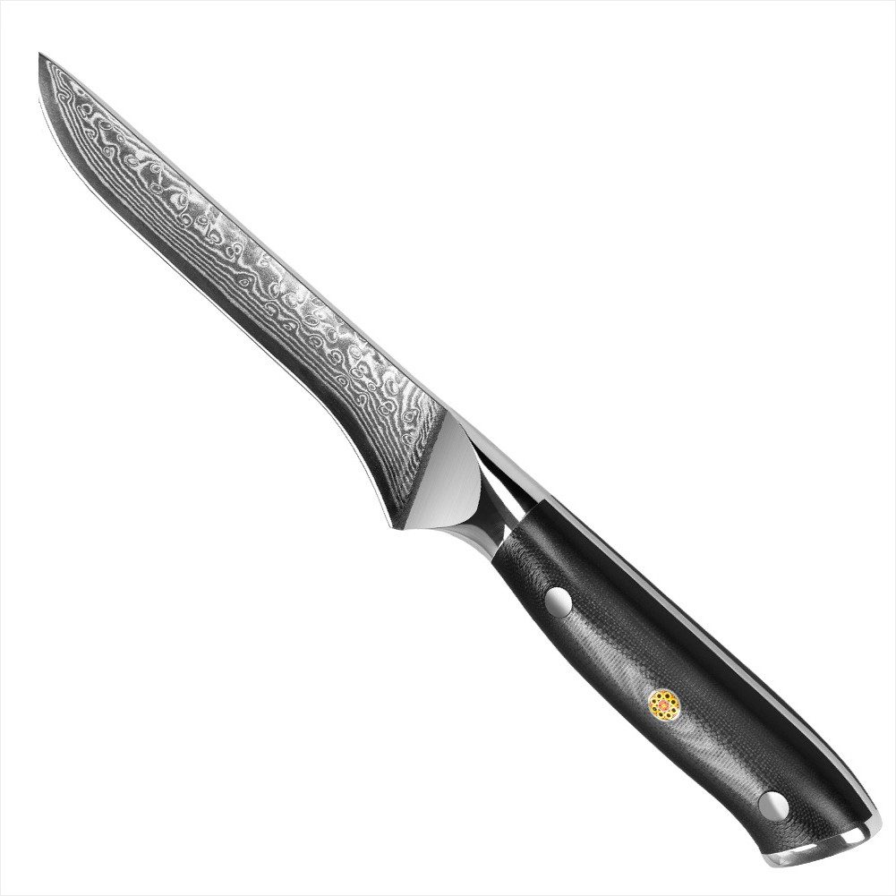 Damaststahl Messer haben eine höhere Schärfe, Zähigkeit und Rostbeständigkeit und sind Multifunktionsmesser, die in jeder Küche benötigt werden. Die robuste Klinge mit scharfer Spitze ist ideal für die mühelose Handhabung verschiedener Fleisch- und Fischsorten, zum Schneiden, Schälen, Entbeinen und für alle Arten von mühsamen Aufgaben.