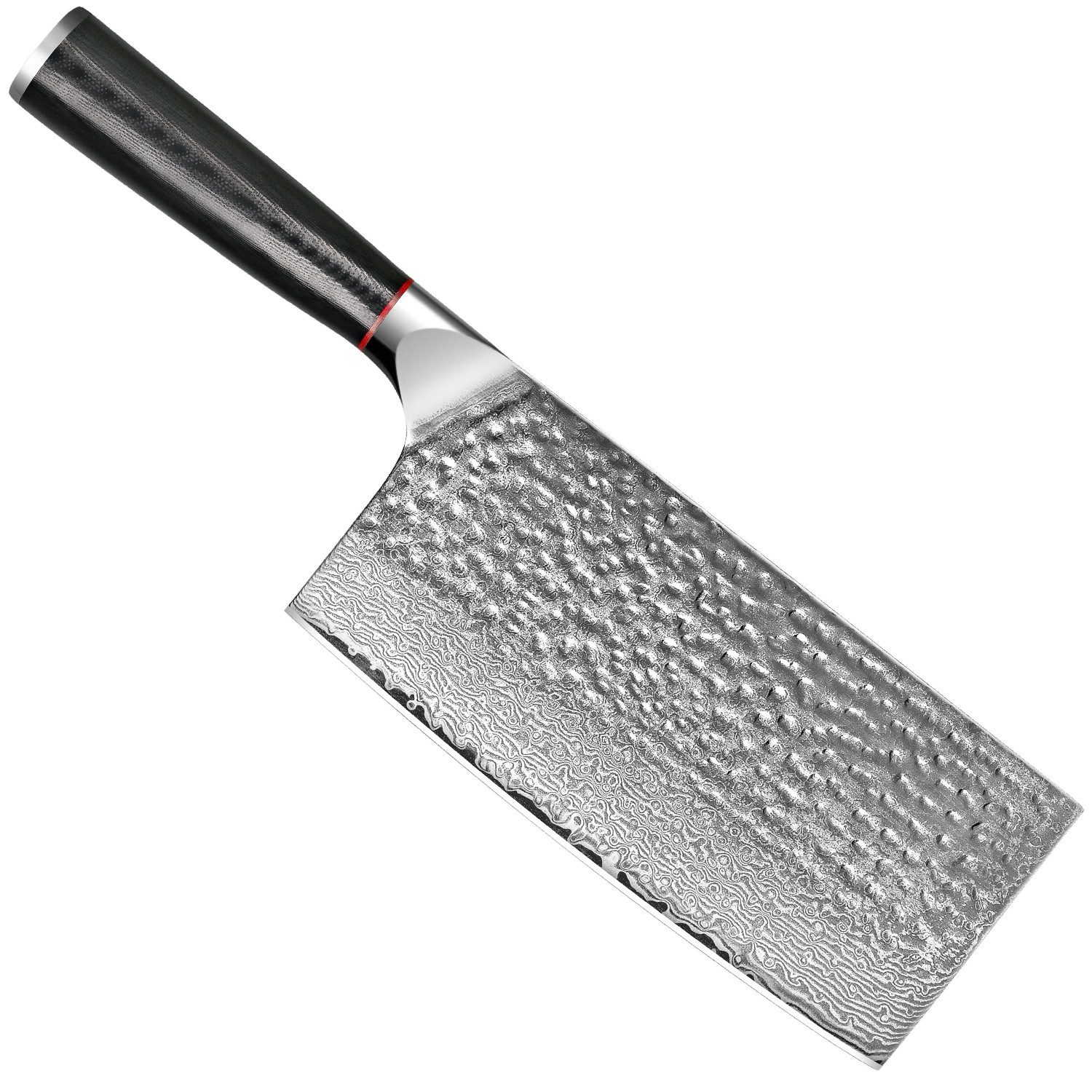 Hergestellt aus 67 Schichten kohlenstoffreichen Damaststahl, der durch Vakuumwärmebehandlung gewonnen wird, kann seine Rockwell-Härte 62HRC erreichen und bietet eine haltbarere Schneidkante. Es bietet außerdem eine hohe Beständigkeit gegen Korrosion, Rost und hat eine Zähigkeit, die der des japanischen VG10-Stahls entspricht.