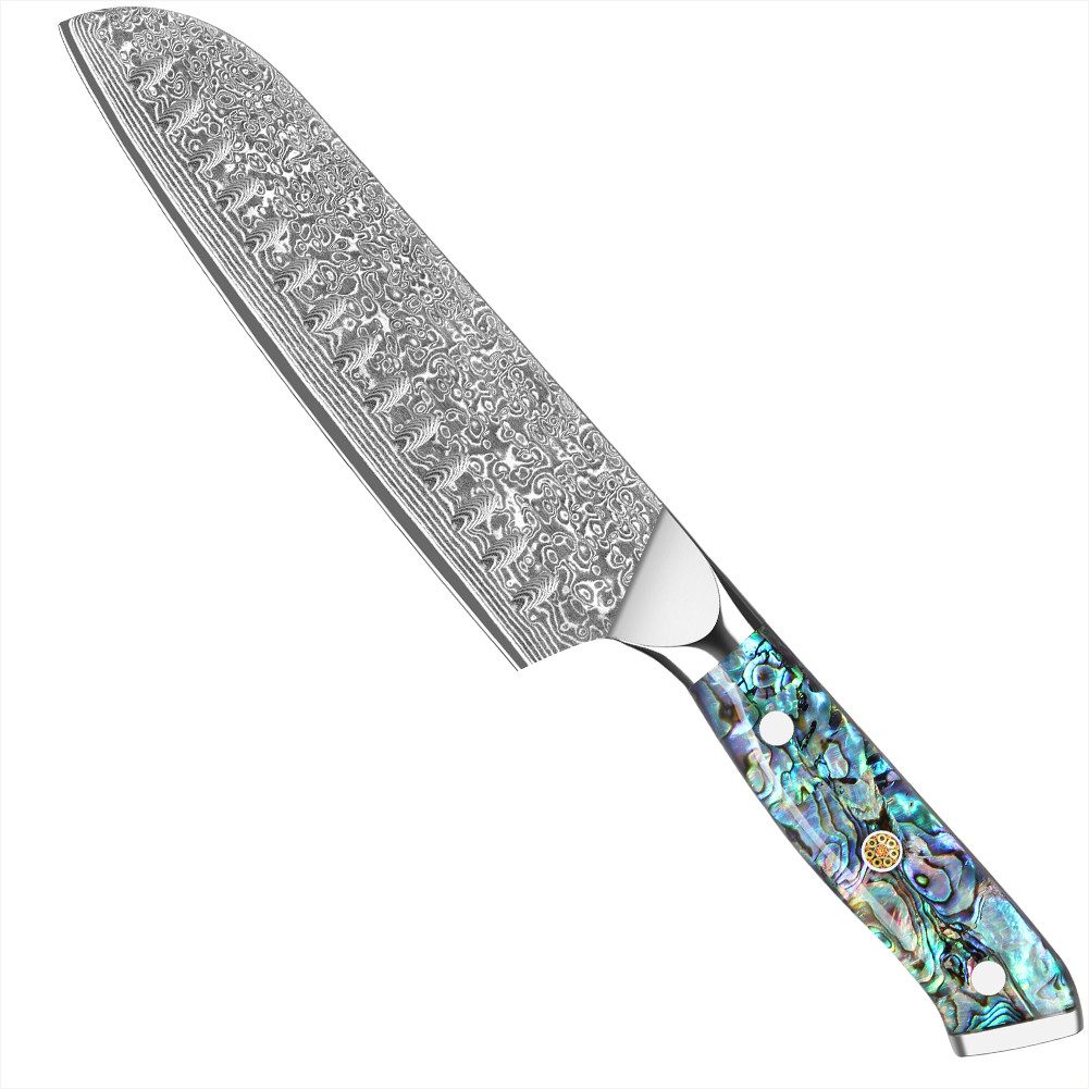 Uber das Damast Santokumesser sushimesser aus Damaststahl mit Abalone Muschel Griff