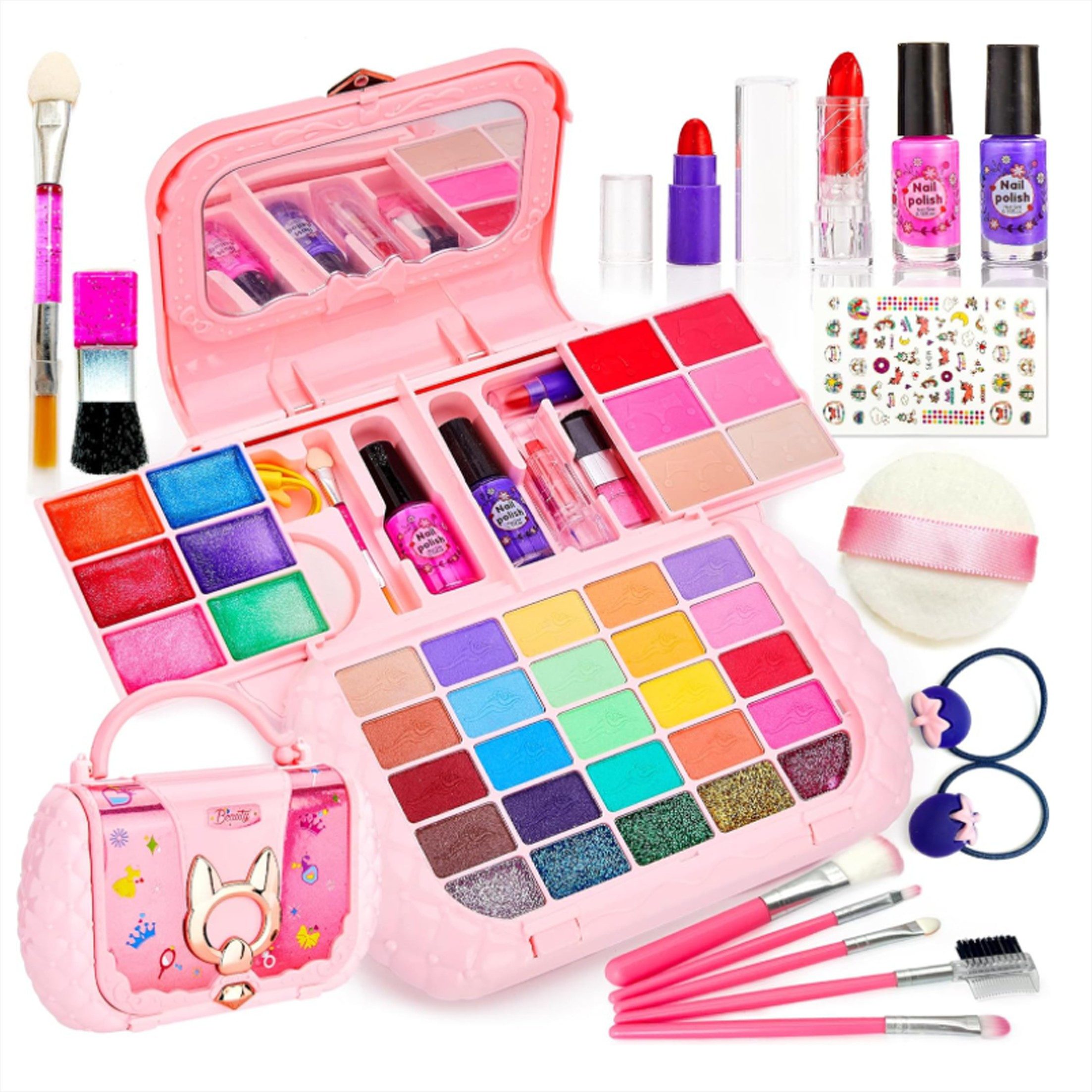 Unser Kinderschminkset enthält 53 Teile, darunter 2 Nagellacke, 2 Lippenstifte, 7 Pinsel, 2 Haarkordeln, 1 Schwamm, 1 Sticker, 6 Puder, 31 Lidschatten und 1 Schminkkoffer. Lassen Sie Ihr Kind seine Fantasie erforschen und seine Kreativität mit diesem kompletten Schminkset fördern.3 4 5 6 7 8 9 10 11 12 Jahre altes Mädchen sicher waschbar Kinder Make-up-Set