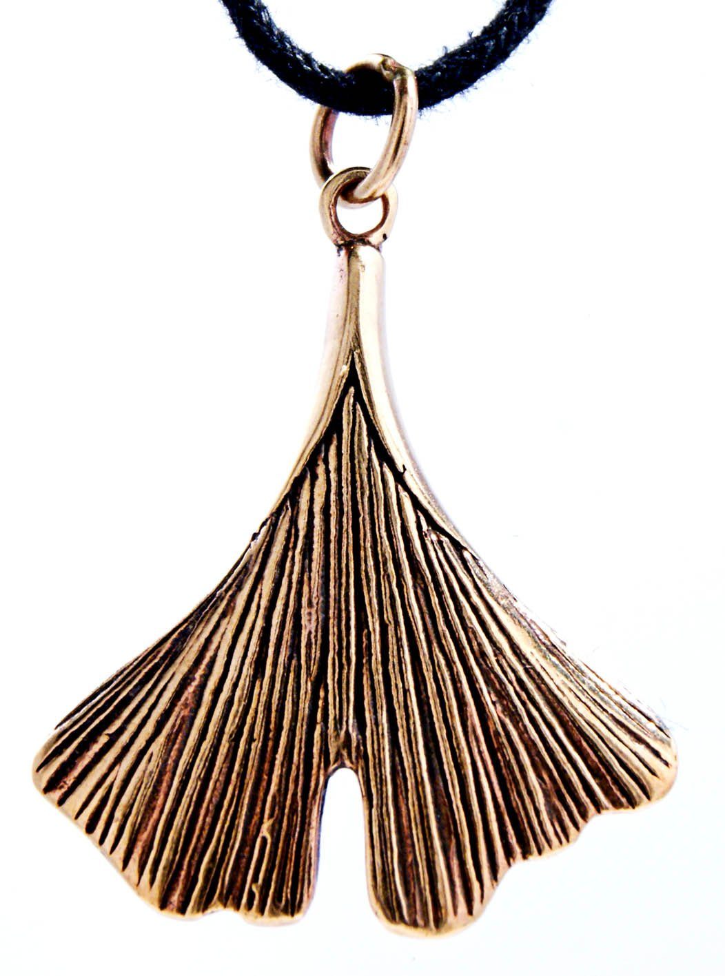 Kiss of Leather Kettenanhänger Ginkgo Blatt Anhänger Bronze Lebenskraft Yin Yang Japan Nr. 2