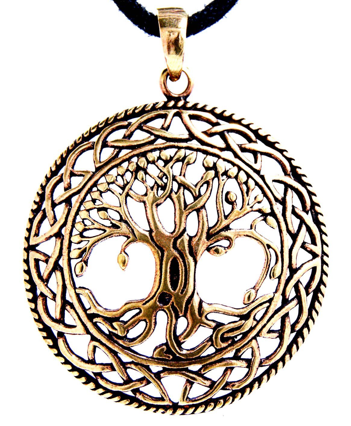 Der Anhänger ist auf der Vorderseite teilweise geschwärzt, sodass das filigrane Geflecht der Wurzeln und Äste optimal zur Geltung kommt. Den Baum umgibt ein Ring aus Keltenknoten.