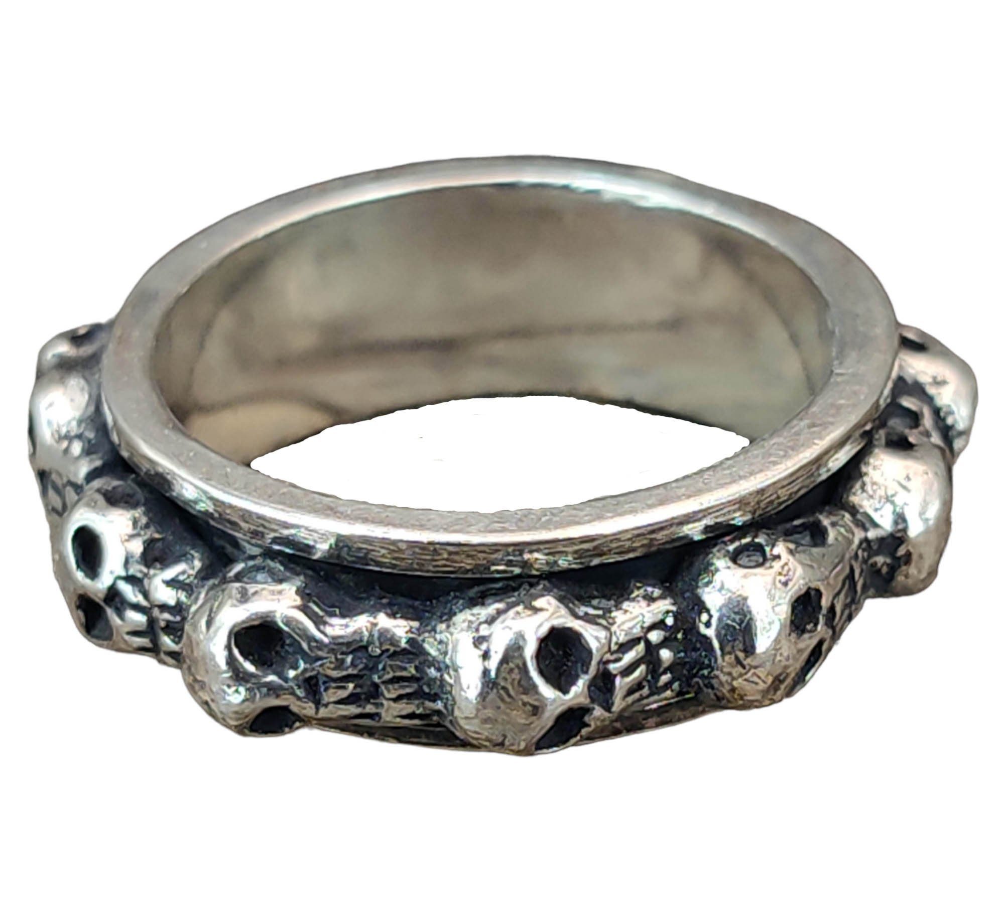 • Der Fingerring ist rundum mit kleinen Totenköpfen verziert und teilweise geschwärzt, sodass die Details optimal zur Geltung kommen.