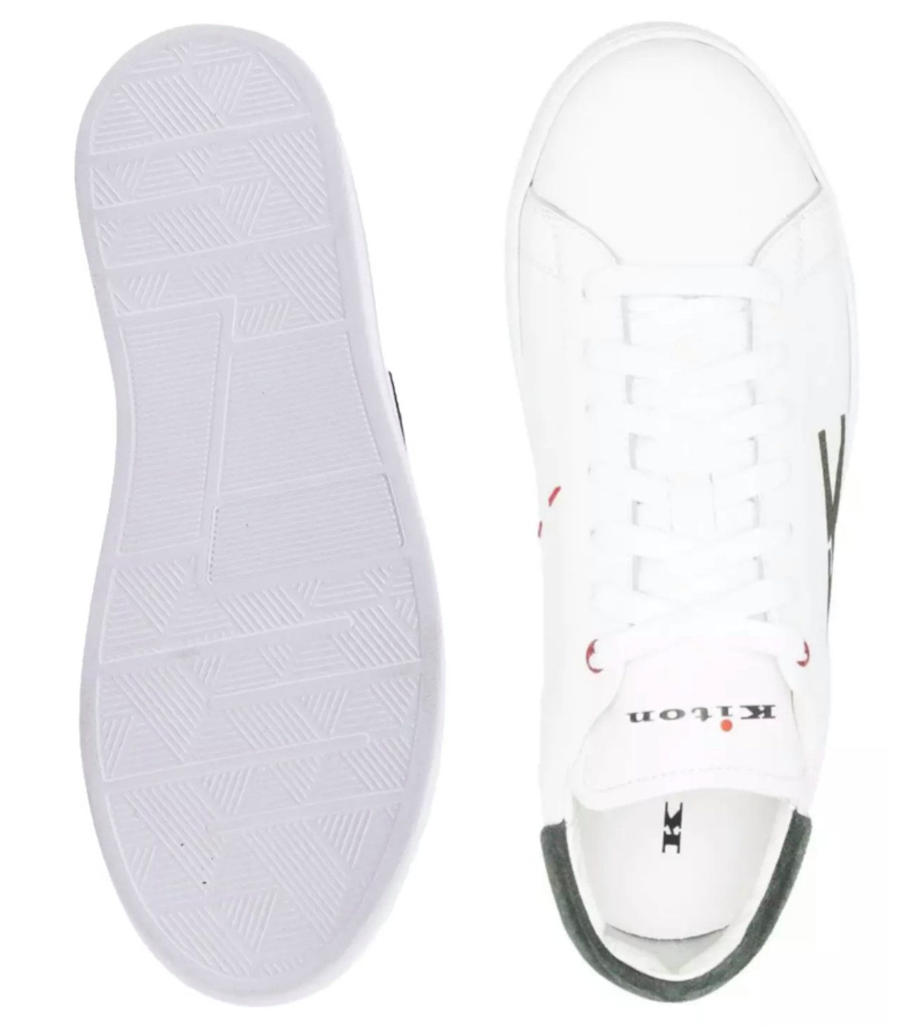KITON Leder-Sneaker mit K-Logo und Kontrastnähten – Weiß/Olive