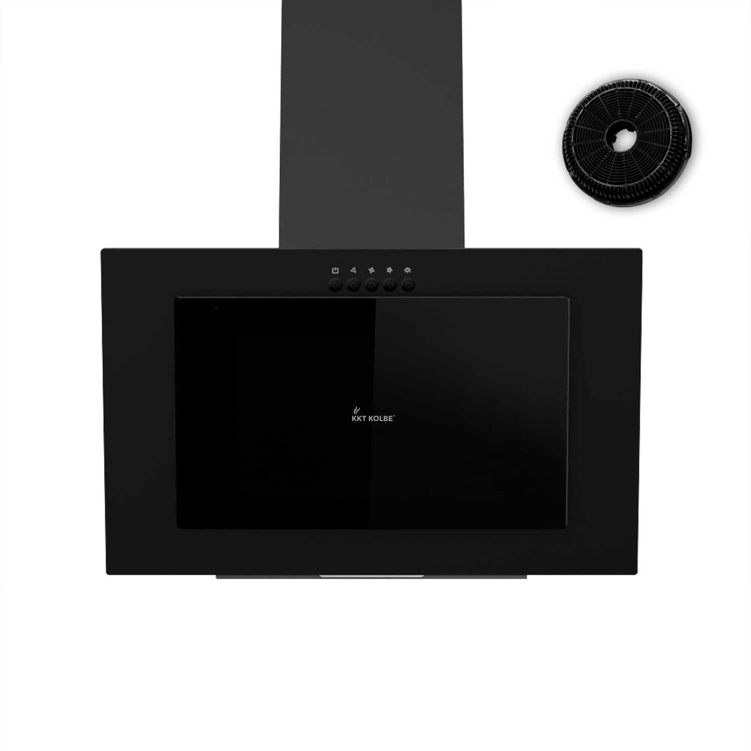 Top-Features | Schräghaube / Schwarz / Glas / Edelstahl / Kopffrei / LED / Druckknopf |