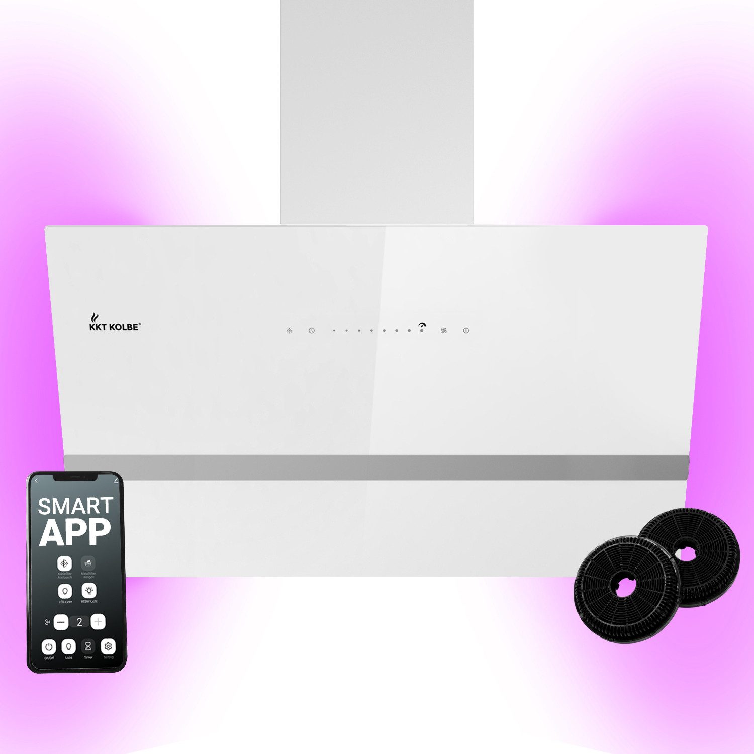 Top-Features | Kopffreihaube / 80cm / Weiß / Glas / WIFI / 9 Stufen / RGBW-LED-Beleuchtung / TouchSelect Sensortasten |