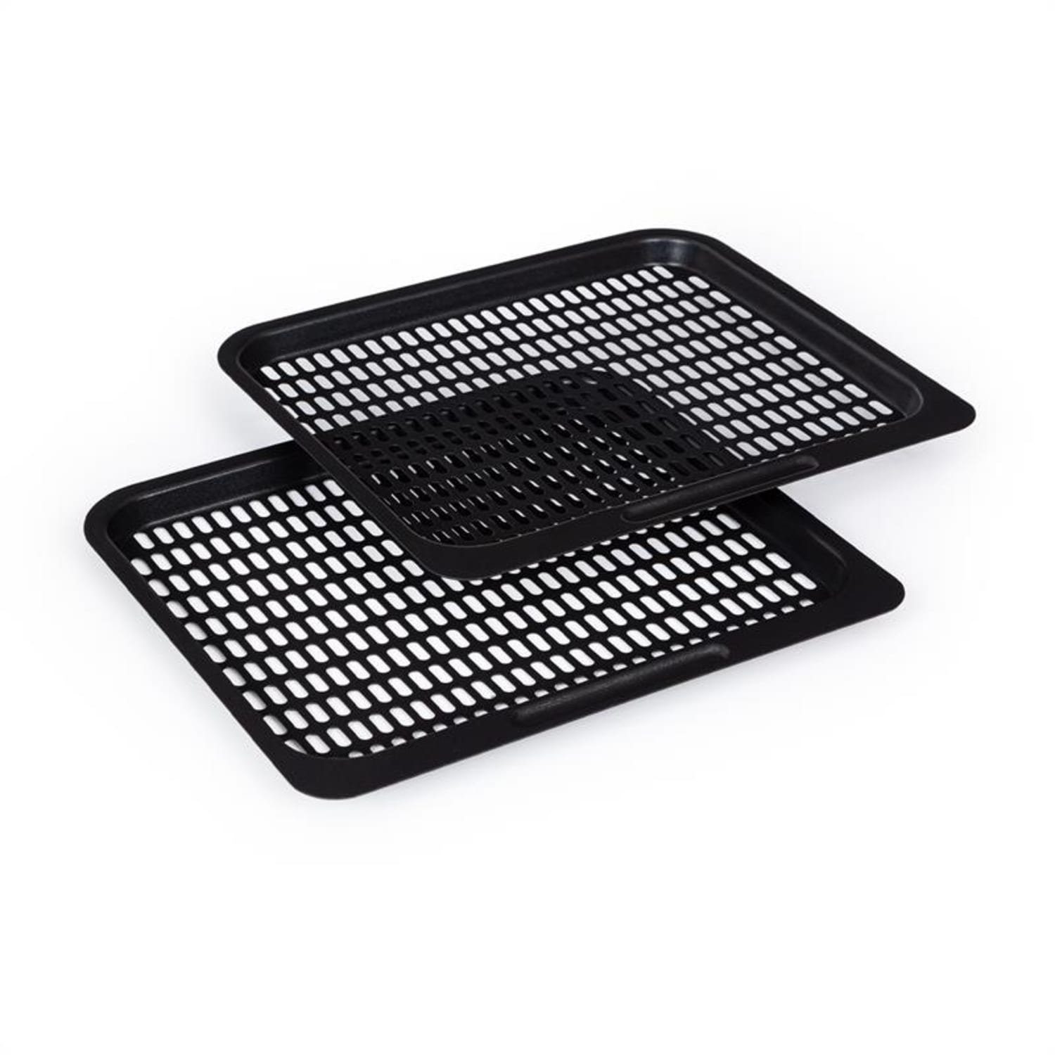 Die beiden Grillroste sind für beste Luftzirkulation in der Heißluftfritteuse durchbrochen und mit einer Antihaft-Beschichtung versehen. Sie eignen sich ideal zur Zubereitung von Pizza, Backwaren, aber auch zum Heißluftgrillen von Steaks oder Fisch. Beide Bleche bieten jeweils 24 x 20 cm Fläche und können nach Belieben in den Einschüben der Klarstein AeroVital Fry Heißluftfritteuse positioniert werden.