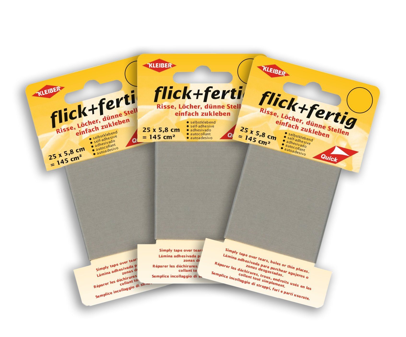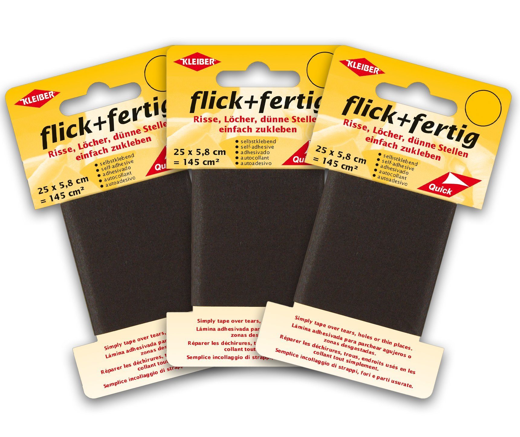 Kleiber flick und fertig selbstklebendes Reparaturband Risse, Löcher, dünne Stellen einfach zukleben, Nylon zuschneidbar, schwarz (25 x 5,8 cm). Praktisch: Mit Kleiber flick+fertig wird Nylon-Bekleidung schnell und zuverlässig repariert – neben Textilien (z. B. Regenjacken, Regenhosen, Skihose, Matschhose Kinder, Schneehose Kinder, Anoraks), ist auch für die Reparatur von Schirmen, Sporttaschen, Reisetaschen und viele Camping- und Freizeitartikel geeignet Kleben statt nähen: Das Reparaturband ist selbstklebend und kann ganz einfach auf die Размер der beschädigten Stelle zugeschnitten werden. Den Nylon-Reparatur-Patches aufkleben und fertig, Sicher: Das Material besteht aus 100% Nylon, ist reißfest, wasserfest und hält sicher mit dem 3M Hi-Strength Kleber. Abmessung 25 x 5,8 cm, gesamt 145 cm² Qualität: Все Kleiber flick und fertig Sets werden auf Schadstoffe geprüft und zertifiziert. Kleiber selbstklebende Flicken: Überall wo nicht genäht werden kann, reparieren Sie sicher und perfekt mit Kleiber flick und fertig In mehreren Farben erhältlich