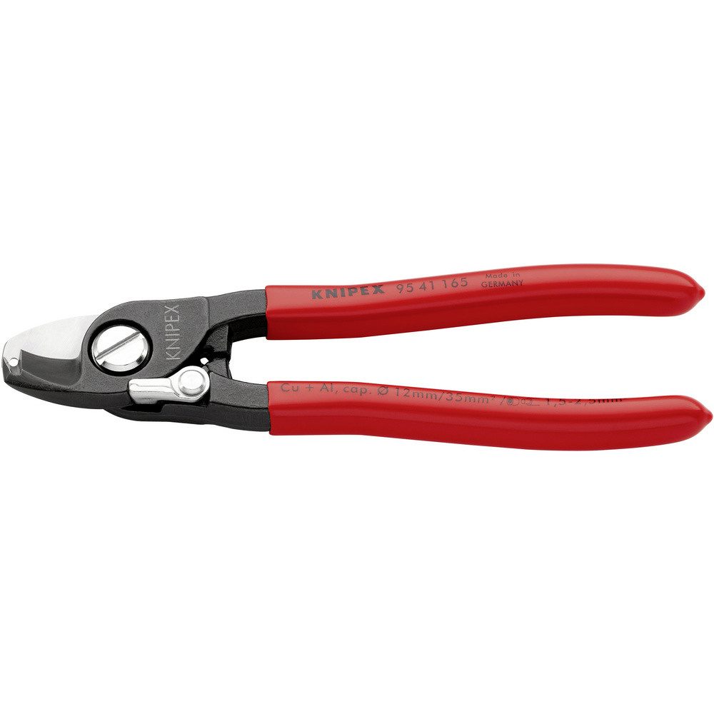Mehrfunktionswerkzeug zum Verarbeiten von NYM-Kabeln von 3 x 1,5 mm² bis 5 x 2,5 mm² (Schneiden und Abisolieren). Universelle Abisolierstelle für beide Massivleiter-Querschnitte. Sichere Zentrierung des Kabels in der Abisolierstelle durch V-förmige Schneidengeometrie. Zum Schneiden von Cu- und Al-Kabeln, ein- und mehrdrähtig. Schneidet glatt und sauber, ohne zu quetschen. Nicht für Stahldraht und hartgezogene Kupferleiter geeignet. Gehärtete Schneiden mit Präzisionsschliff. Leichter Schnitt bei Einhandbedienung. Mit Klemmschutz. Nachstellbares Schraubgelenk, selbstsichernd.