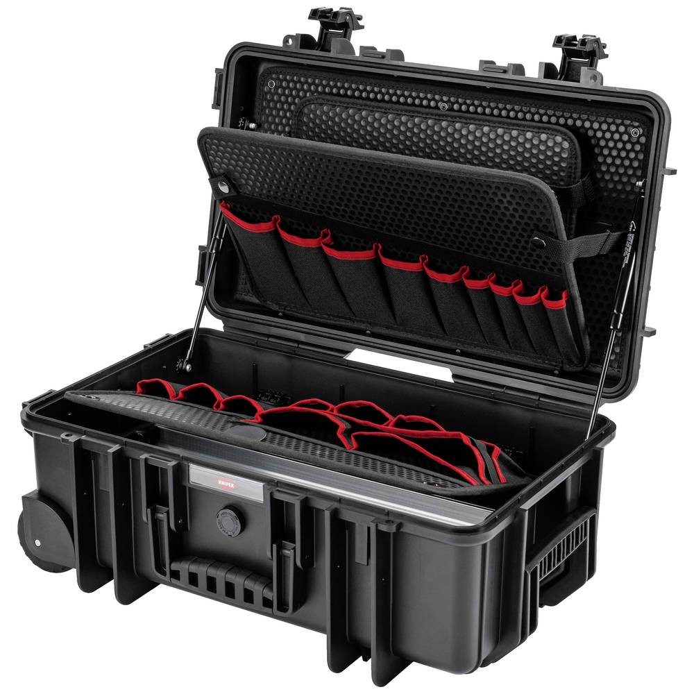 00 21 33 LE Werkzeugkoffer Robust26 Bereit, wenn du es bist: Für härteste Einsatzbedingungen – schlagfestes Polypropylen, Staub-, wasserdicht und temperaturbeständig. Harte Arbeit wird smarte Arbeit: Maximale Flexibilität dank 19 Werkzeugtaschen und 61 Halteschlaufen sowie anpassbarem Aluminium-Trennstegesystem. Bringt dein Know-how bequem ans Ziel: Flugtauglich, mit ausfahrbarem, ergonomischen Haltegriff und leichtlaufenden Rollen für mehr Komfort. Flugtauglicher Koffer aus schlagfestem Polypropylen. Staub- und wasserdicht. Automatisches Druckausgleichventil. Temperaturstabil von -30°C bis +80°C. Vorrichtung für Vorhängeschloss. Dokumentenfach, Werkzeugtafeln aus schmutzabweisenden PP-Hohlkammerplatten mit bestückbaren Werkzeugtaschen und -schlaufen. Verschließbare Bodenschale individuell unterteilbar durch Aluminium-Trennstegesystem. Ergonomischer Zweikomponenten-Griff. Mit 19 Werkzeugtaschen und 61 Halteschlaufen. - Abmessung Breite außen (innen): 350mm - Abmessung Höhe außen (innen): 225mm - Abmessung Tiefe außen (innen): 550mm.