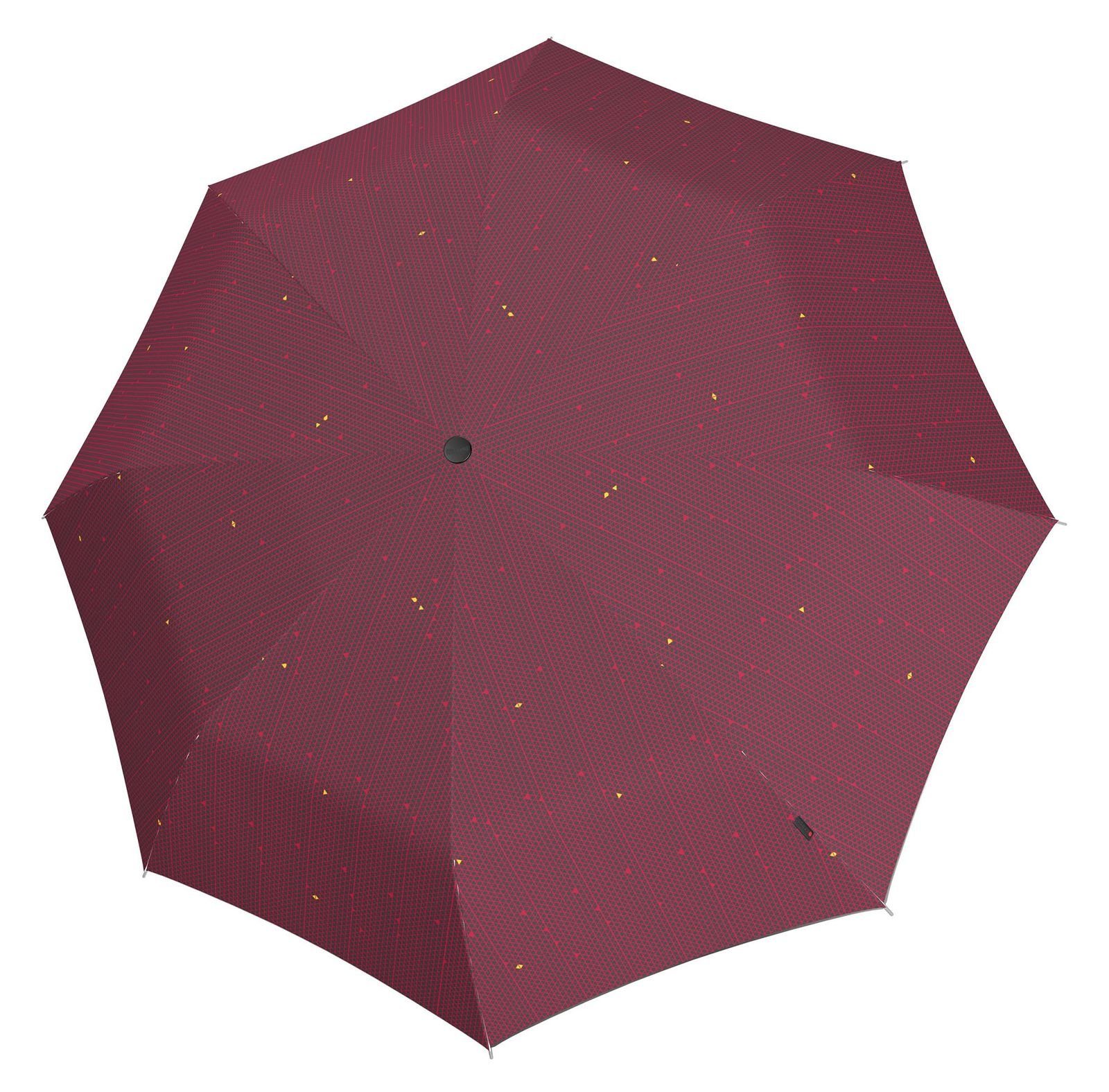 Dieser Knirps Artikel ist nicht nur ein zeitlos gemusterter Genosse, sondern imponiert mit seiner zuverlässigen Funktion als Regenschutz. Mit leichtem Druck auf den Knopf lässt sich der Regenschirm schnell und einfach öffnen und so sind Sie vor Wind und Wetter geschützt. Im geschlossenen Zustand können Sie den Knirps T.205 Duomatic Twofold Ecorepel M in der Schutzhülle praktisch in jeder Taschen verstauen.