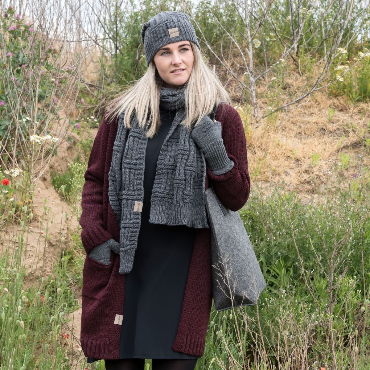 Bei unseren Cleo Handstulpen in der Farbe Grau, handelt es sich um warme, weiche, graue Handschuhe ohne Finger. Unsere Handstulpen aus der Kollektion Cleo bestehen aus gewalkter Wolle und wurden sorgfältig mit viel Raffinesse gestrickt. Sie reichen bis zur Hälfte des Unterarms, schmiegen sich um den Daumen und haben eine weitere Aussparung für die restlichen Finger. Da die Fingerenden offen sind, hat man mit diesen hellgrauen Pulswärmern genügend Bewegungsfreiheit, während Hand und Puls vor der Kälte geschützt sind. Die Cleo Handstulpen gibt es nicht nur in der Farbe Grau, sondern auch noch in über 20 anderen Farben von Knit Factory.