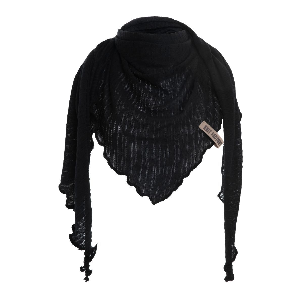 1 x Knit Factory Jose Dreieckstuch Schwarz 190x85 cm Gestreift