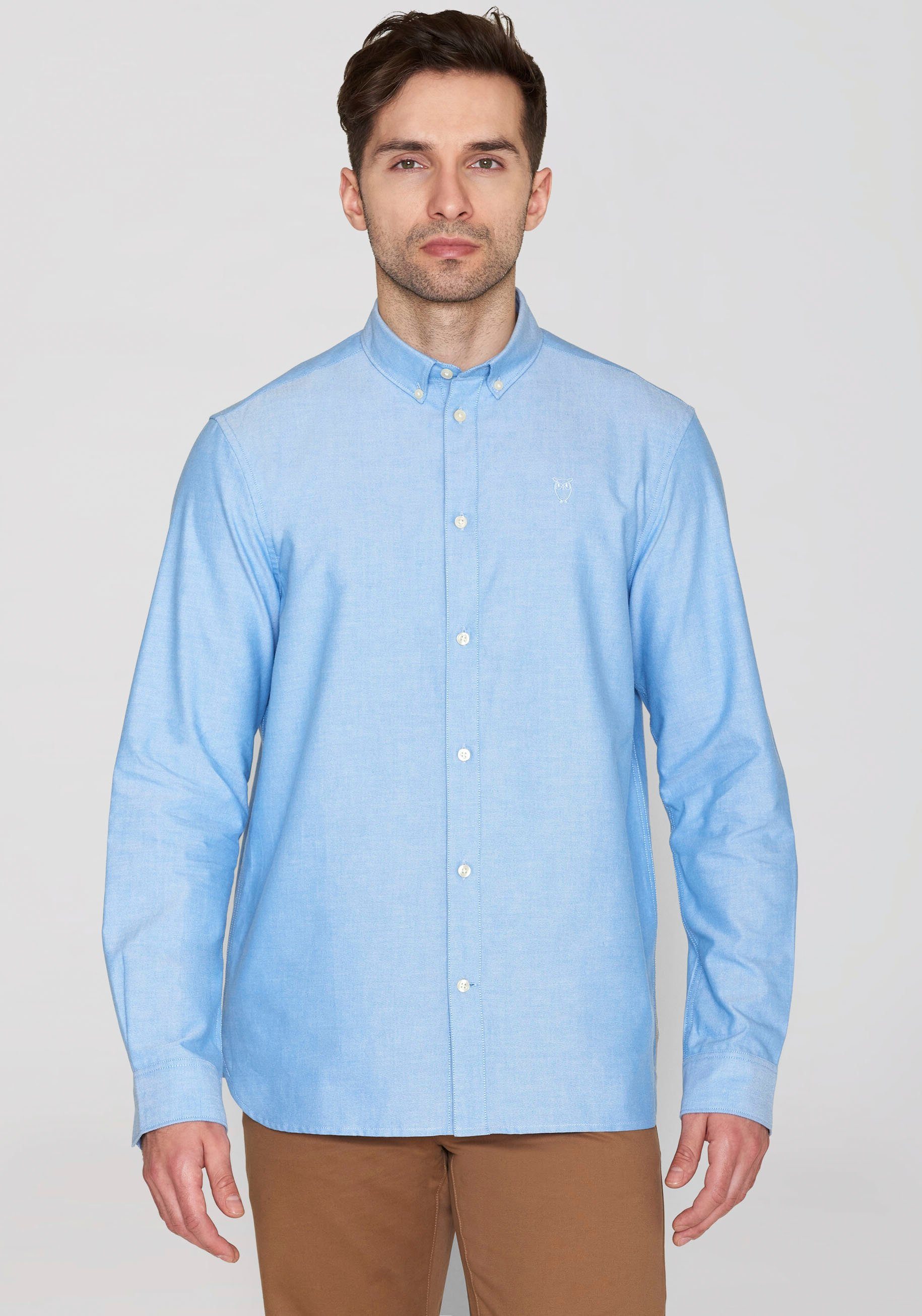 Das Langarmhemd »HARALD« von KnowledgeCotton Apparel ist sowohl bei schicken Anlässen als auch im Büro eine gute Option. Der Button-down-Kragen wird durch kleine Knöpfe am Hemd befestigt und kommt somit ohne Kragenstäbchen aus. Dieses Hemd ist basic geschnitten und umspielt deinen Oberkörper locker.