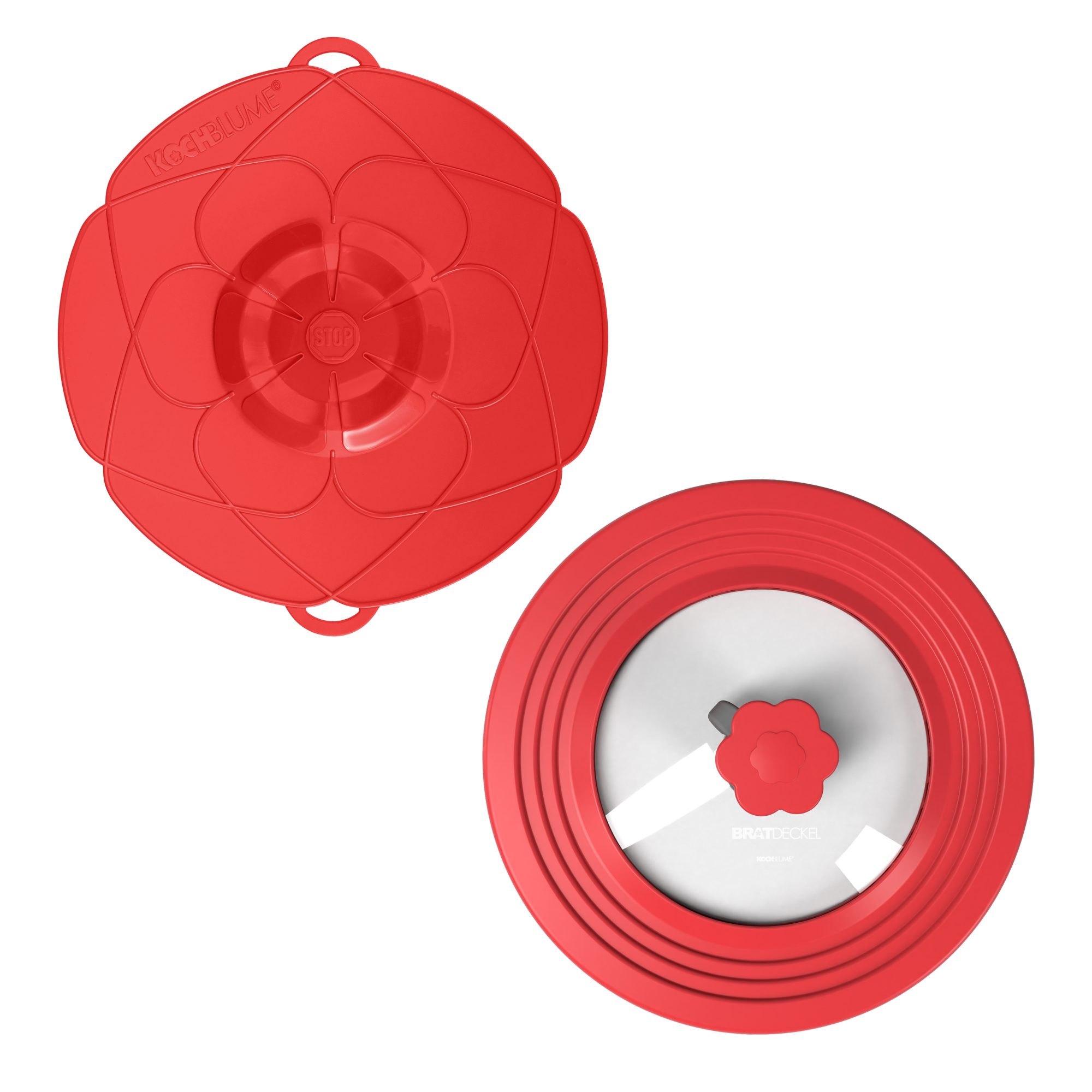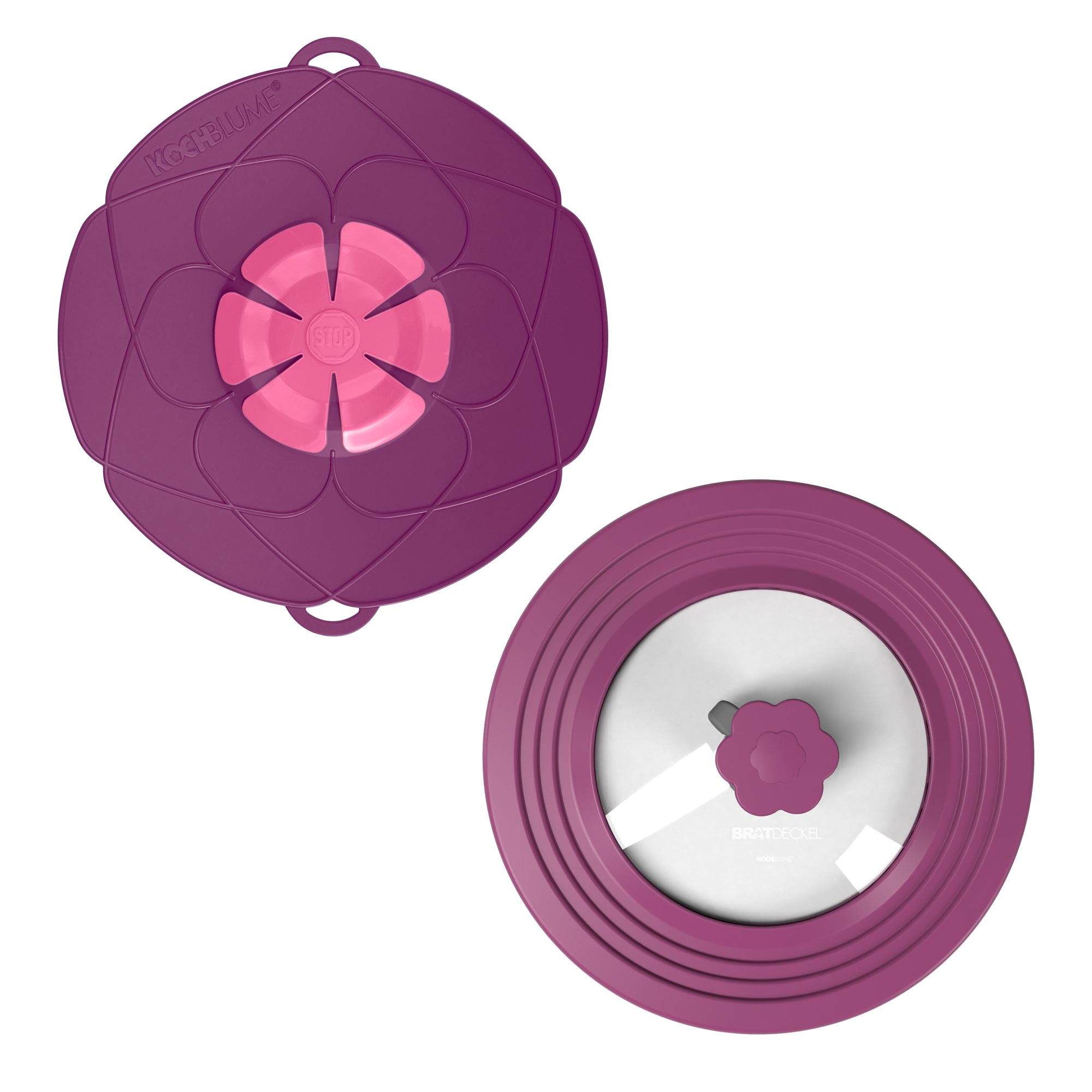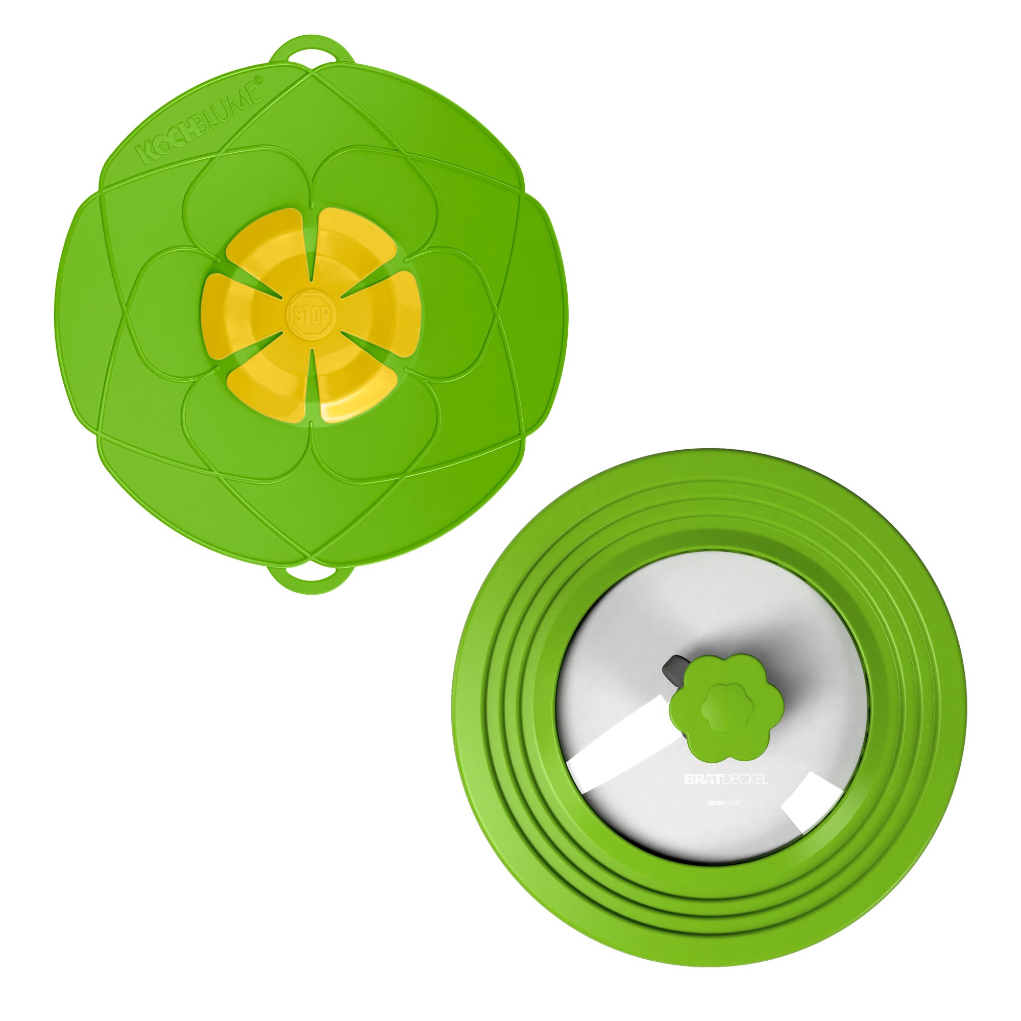 ÜBERKOCH-STOPP: Deckel einfach auflegen, der überkochende Schaum oder die Flüssigkeit wird aufgefangen und läuft dank der flexiblen Blüte wieder in den Kochtopf zurück.