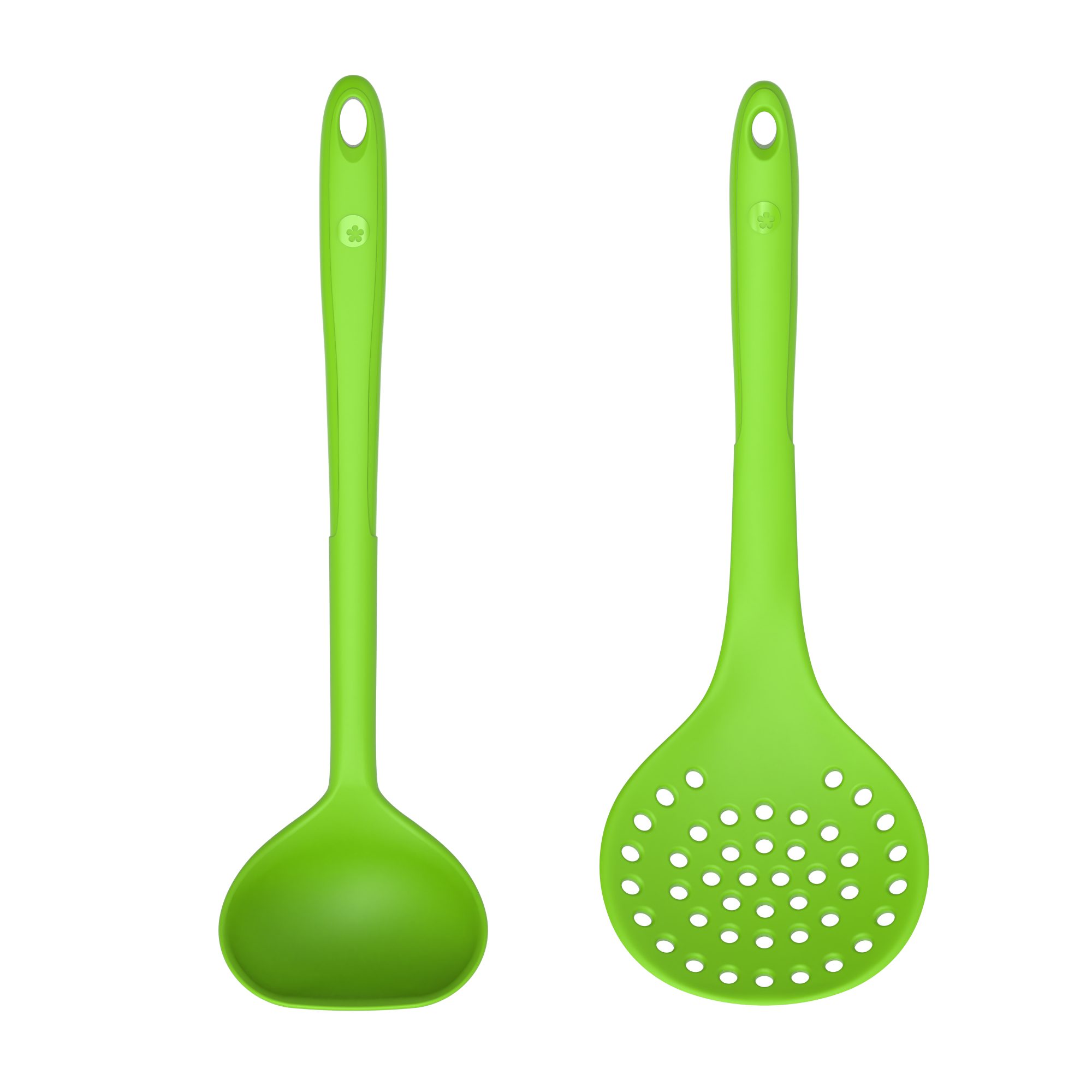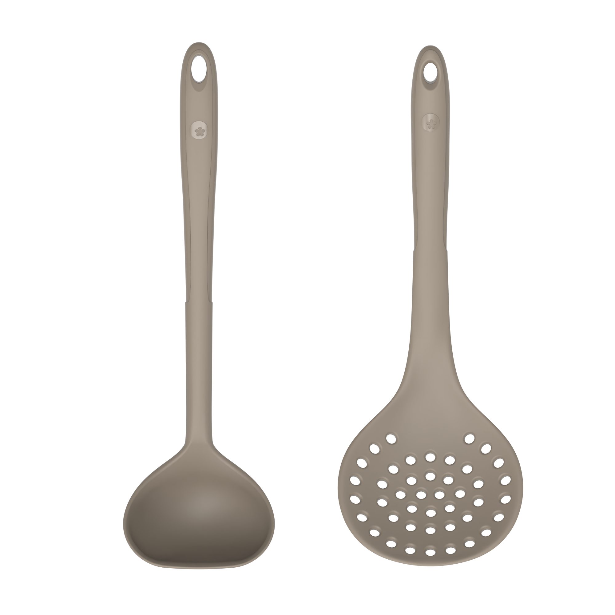 Ganz traditionell verwendet man den Schaumlöffel um den Schaum von Suppen zu schöpfen, um eine schöne klare Brühe zu kochen.Ein Schaumlöffel ist ein vielseitiger Helfer in der Küche und daher ein elementarer Bestandteil einer gut ausgestatteten Küche.Auch für Knödeln, Gnocchi, Ravioli, Tortellini oder Spätzle ob selbstgemacht oder gekauft ist eine Schaumlöffel bestens geeignet.Ebenso dient ein Schaumlöffel perfekt dazu blanchiertes Gemüse, gekochte Eier oder pochierte Eier aus dem Wasser zu heben. Wer aus dem Vollen schöpfen will, braucht eine Schöpfkelle! Der flexible Aufbau der Schöpfkelle ermöglicht es Dir, alle Ecken Deiner Töpfe zu erreichen. Ob Soßen, Suppen, Eintöpfe, Bowlen oder Glühwein - mit der Schöpfkelle ist nicht einmal die kleinste Erbse vor Dir sicher. Auch zum Portionieren von Pfannkuchen- oder Waffelteig ist sie gut geeignet. Lebensmittelechtes Silikon und BPA-frei Hitzebeständigkeit bis 260°C Spülmaschinenfest Edelstahlkern Schont die Oberfläche von Töpfen, Pfannen und Schüsseln 2er Set