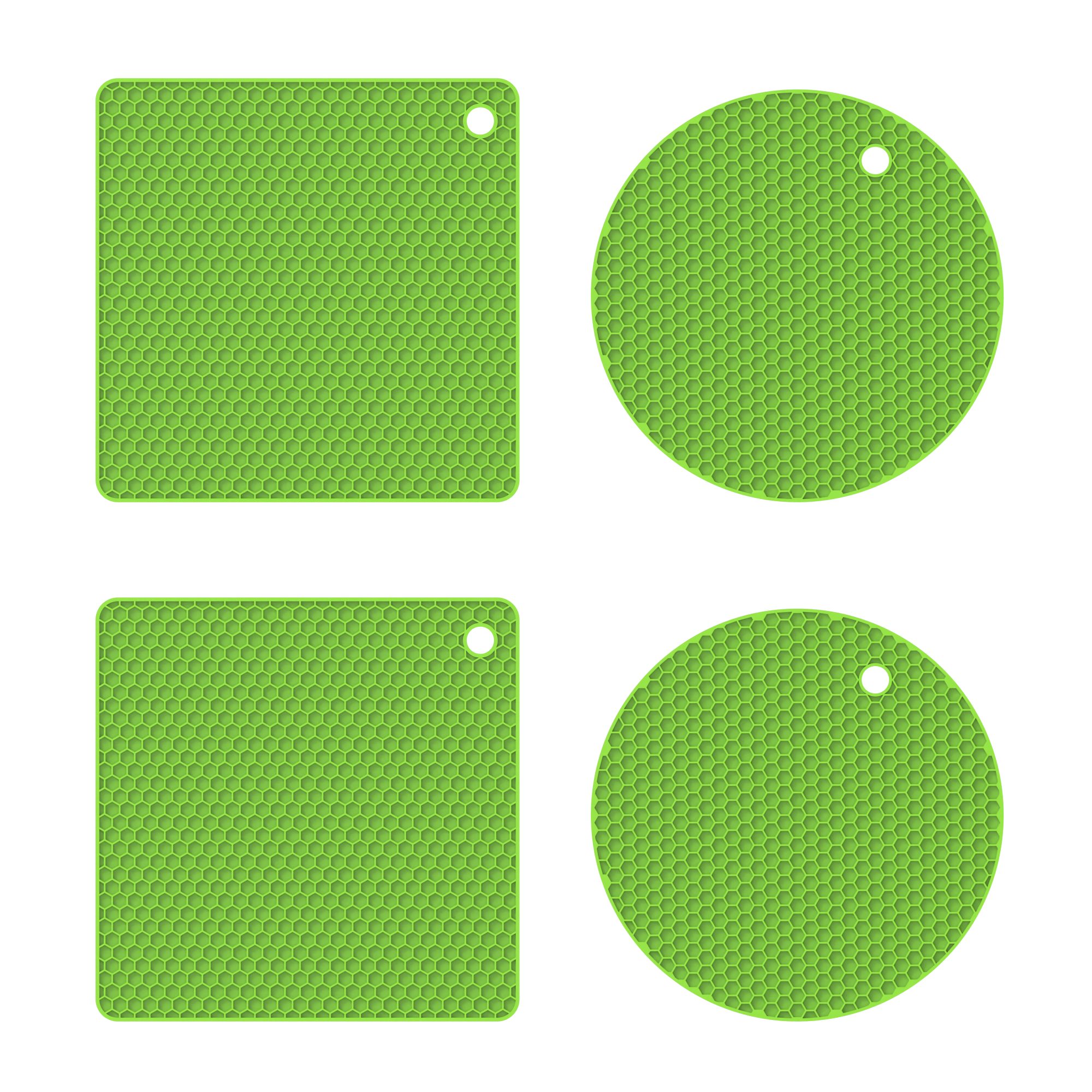 Der Wabenuntersetzer eignet sich besonders als Topflappen oder Topfuntersetzer. Durch seine Honigwabenstruktur schützt er Deine Hände, sowie Tischoberflächen vor Hitze und Verbrennungen. Wabenstruktur zum Schutz für Hände und Oberflächen Ideal als Untersetzer oder Topflappen Lebensmittelechtes Silikon und BPA-frei Hitzebeständig bis 260°C Spülmaschinenfest 4er Set