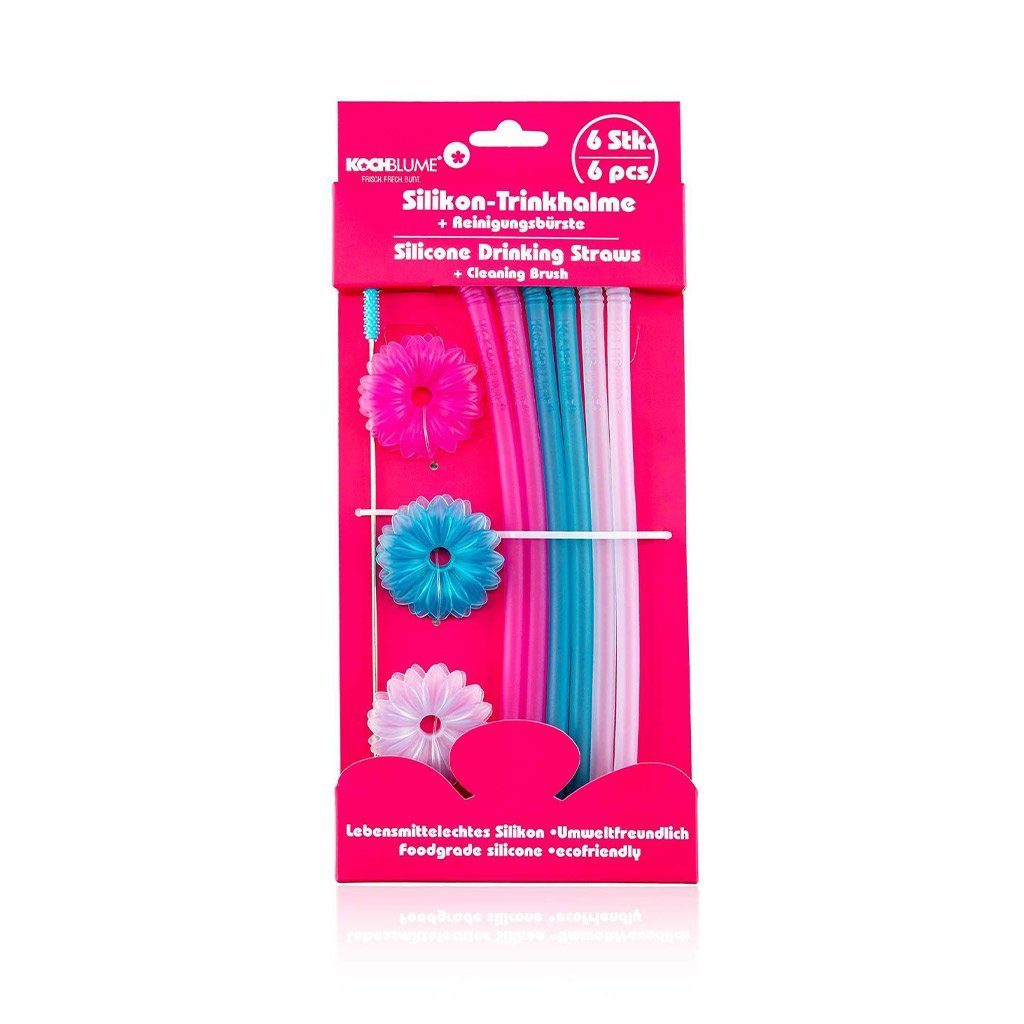 Denk an die Umwelt! Verzichte auf Strohhalme aus Plastik, welche immer nachgekauft werden müssen und gleichzeitig die Umwelt belasten und verwende einfach die Trinkhalme von KOCHBLUME aus Silikon. Im 6er-Set ist eine Reinigungsbürste aus Silikon, sowie sechs Blüten enthalten. Diese Blüten kannst Du einfach aufstecken, um zu verhindern, dass Dein Trinkhalm in Gläser oder Flaschen rutscht. Sie sind zum Einen mit der beigelegten Bürste zu reinigen oder aber in Deiner Spülmaschine. Dank dem lebensmittelechten Silikon sind sie nach jedem Gebrauch wieder sauber und hygienisch.