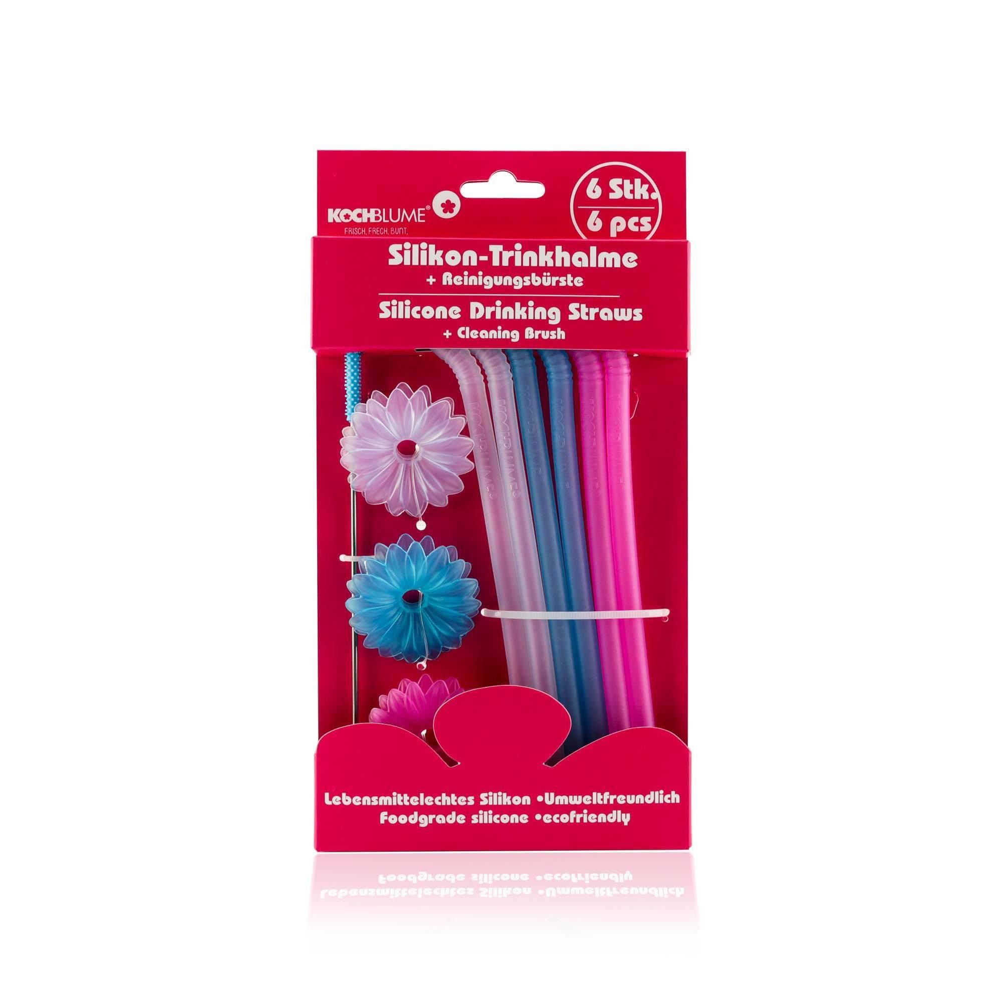 Denk an die Umwelt! Verzichte auf Strohhalme aus Plastik, welche immer nachgekauft werden müssen und gleichzeitig die Umwelt belasten und verwende einfach die Trinkhalme von KOCHBLUME aus Silikon. Im 6er-Set ist eine Reinigungsbürste aus Silikon, sowie sechs Blüten enthalten. Diese Blüten kannst Du einfach aufstecken, um zu verhindern, dass Dein Trinkhalm in Gläser oder Flaschen rutscht. Sie sind zum Einen mit der beigelegten Bürste zu reinigen oder aber in Deiner Spülmaschine. Dank dem lebensmittelechten Silikon sind sie nach jedem Gebrauch wieder sauber und hygienisch.