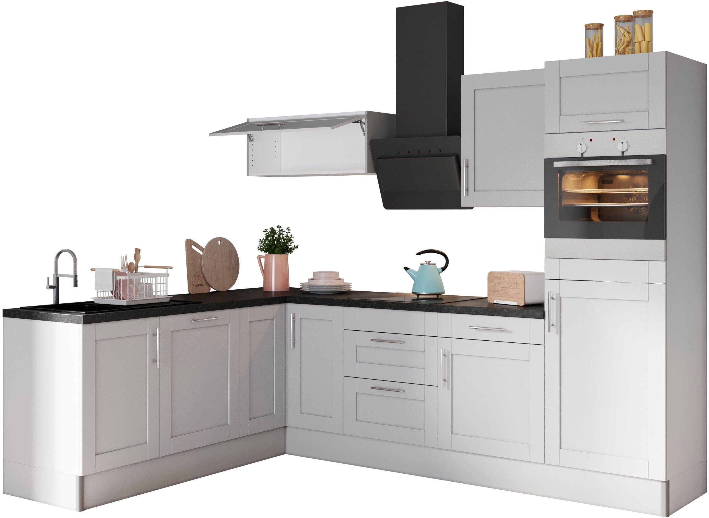 Hinweis Lieferumfang | inklusive Granit-Einbauspüle, Drehboden-Set, Sockelblenden,Sockelverbinder, Sockelrückführung, , Besteckeinsatz 60 cm |
