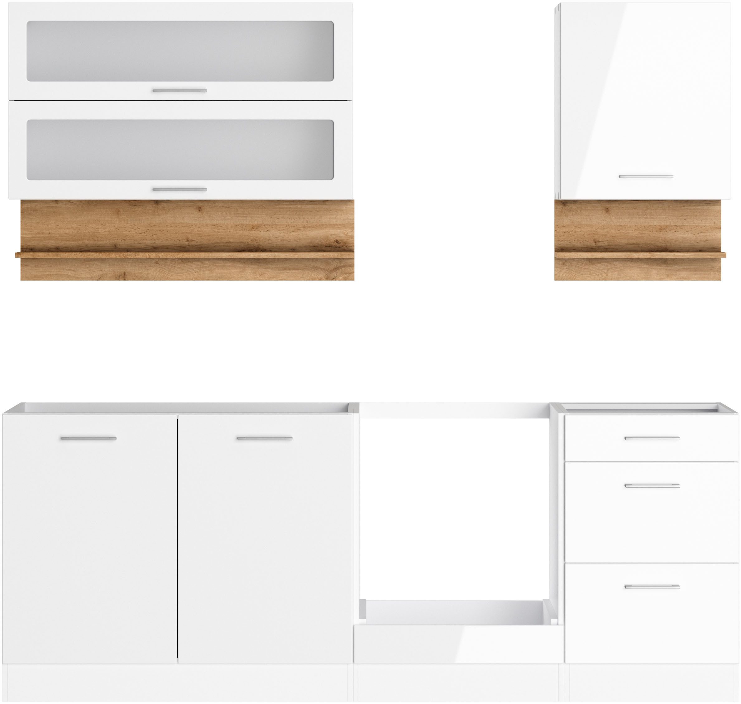 Ausstattung | Einlegeböden höhenverstellbar Laufleisten der Schubkästen aus Metall Stellschrauben in den Unterschränken als Montagehilfe zum Ausgleichen von Unebenheiten: 0-4 cm ohne E-Geräte |