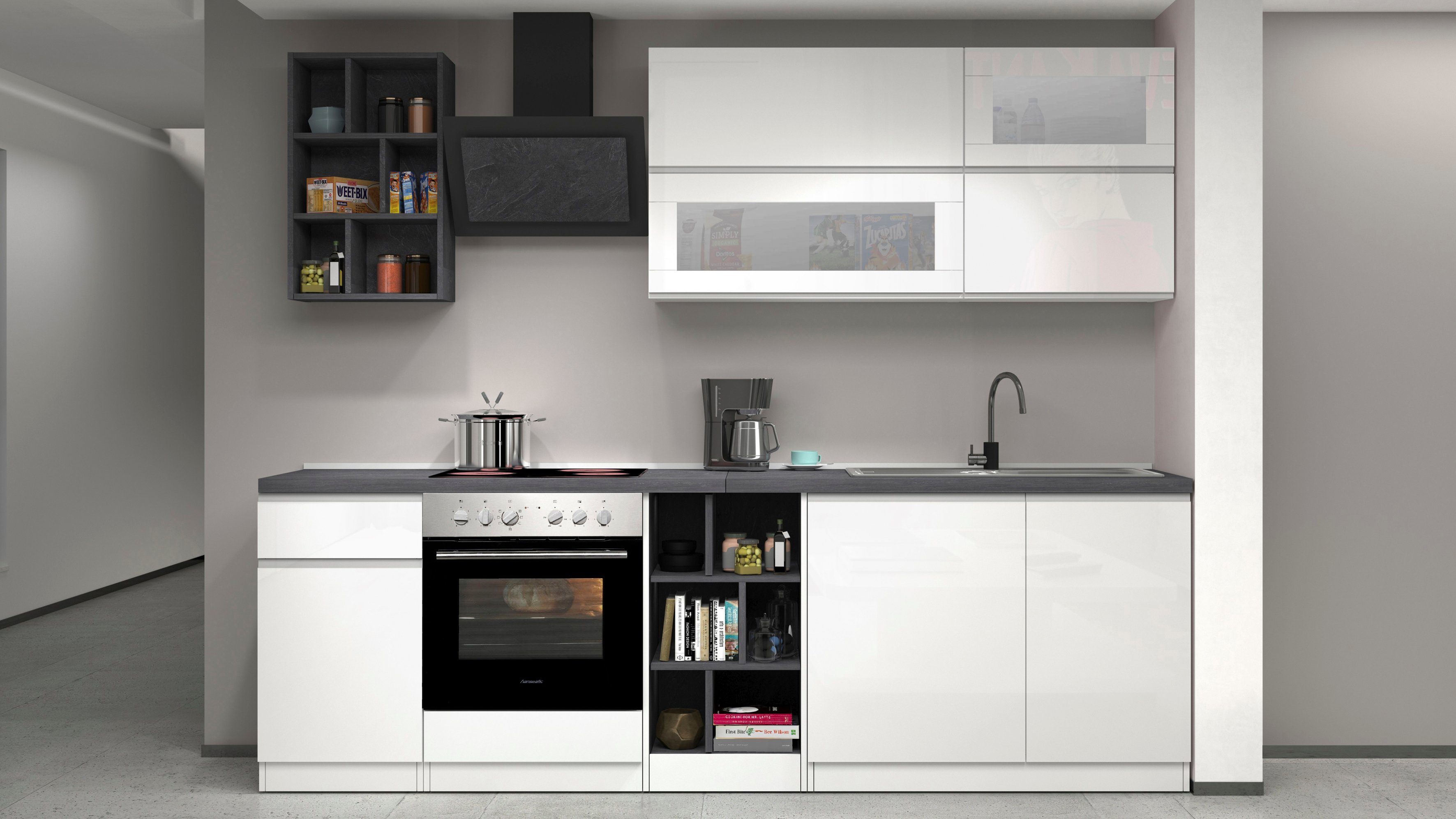 Informationen Regal 2 | Standregal mit 6 offenen Fächern, neben dem Spülenschrank |