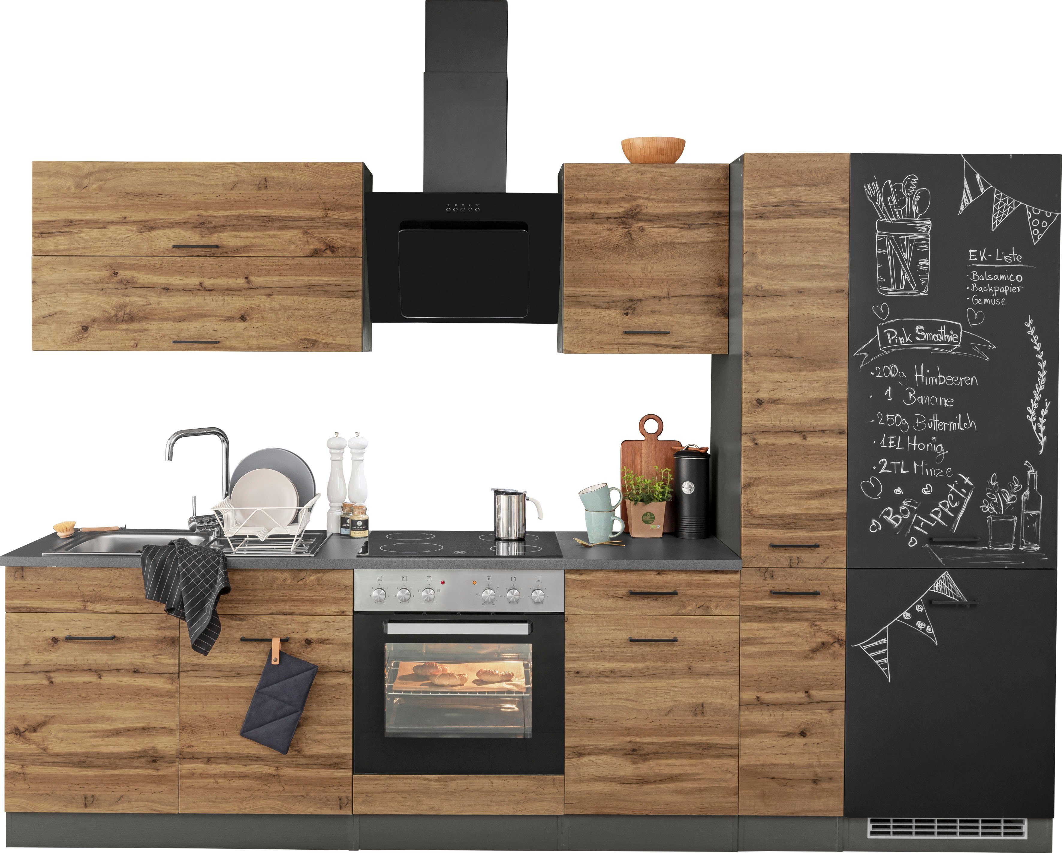 Set beinhaltet | Set bestehend aus: 1 x Apothekerschrank, 1 x Spülenschrank, 1 x Herdumbauschrank, 1 x Arbeitsplatte, 1 x Herd, 1 x Dunstabzugshaube, 1 x Hängeschrank, 1 x Kühlumbauschrank, 1 x Unterschrank, 1 x Kochfeld, 1 x Spüle, 1 x Einbaubecken, 1 x Klapphängeschrank, 1 x Kühl-/Gefrierkombination