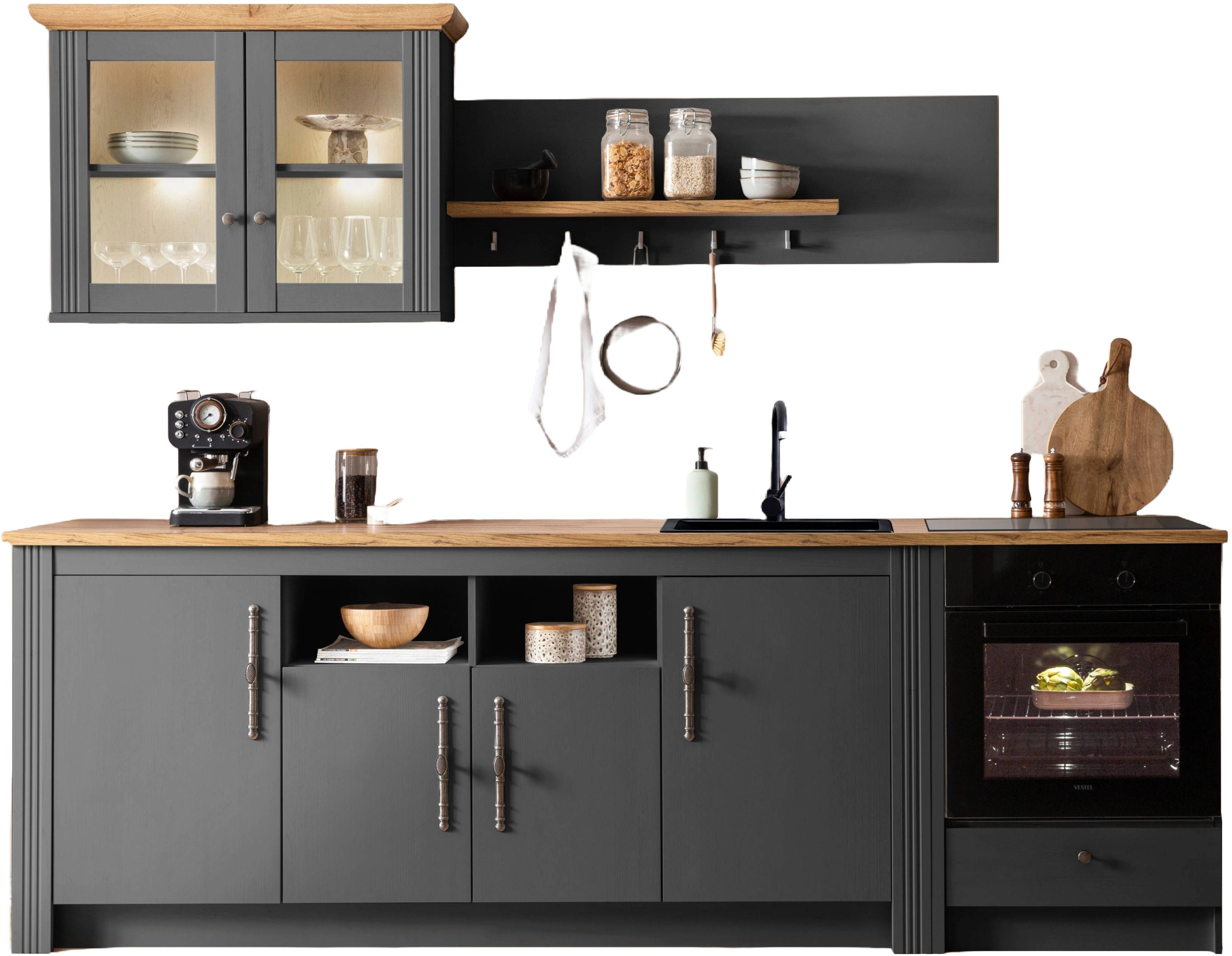 Set beinhaltet | 1x Sideboard, 1x Wandpaneel, 1x Hängeschrank, 1x Herdumbau |